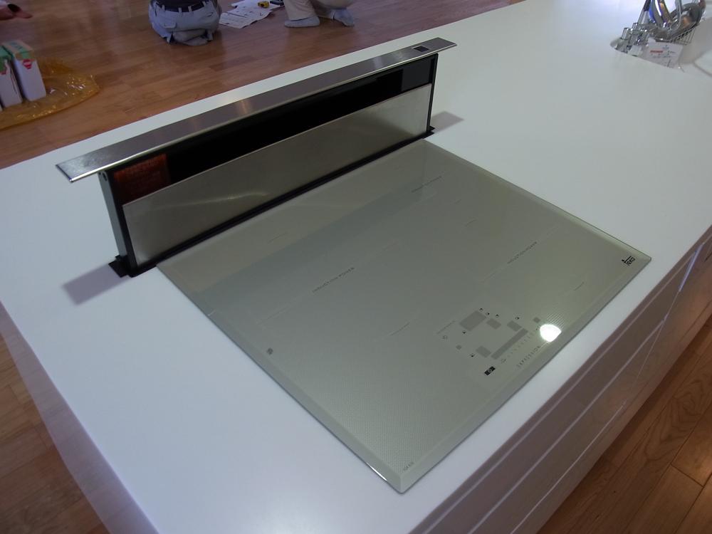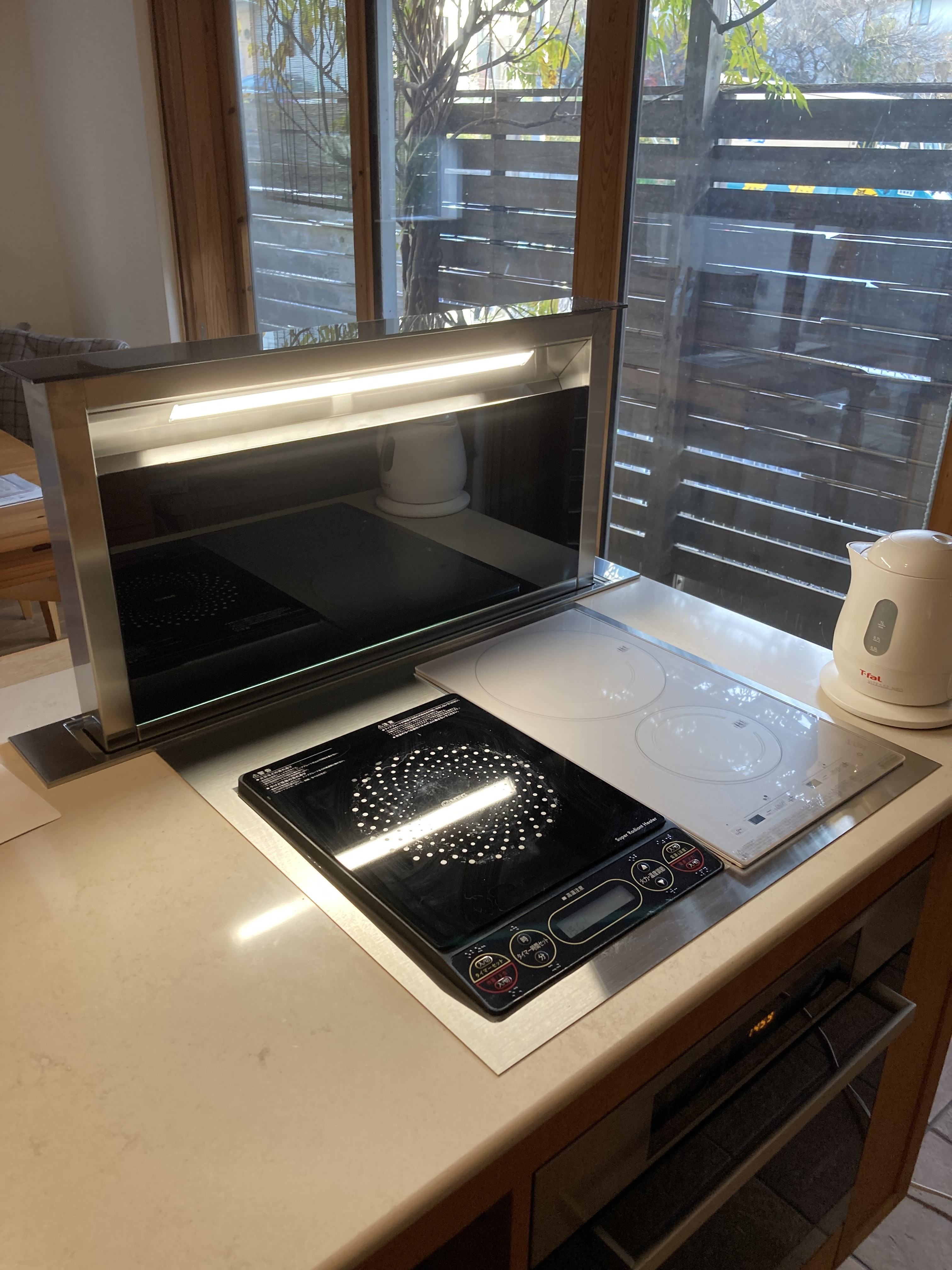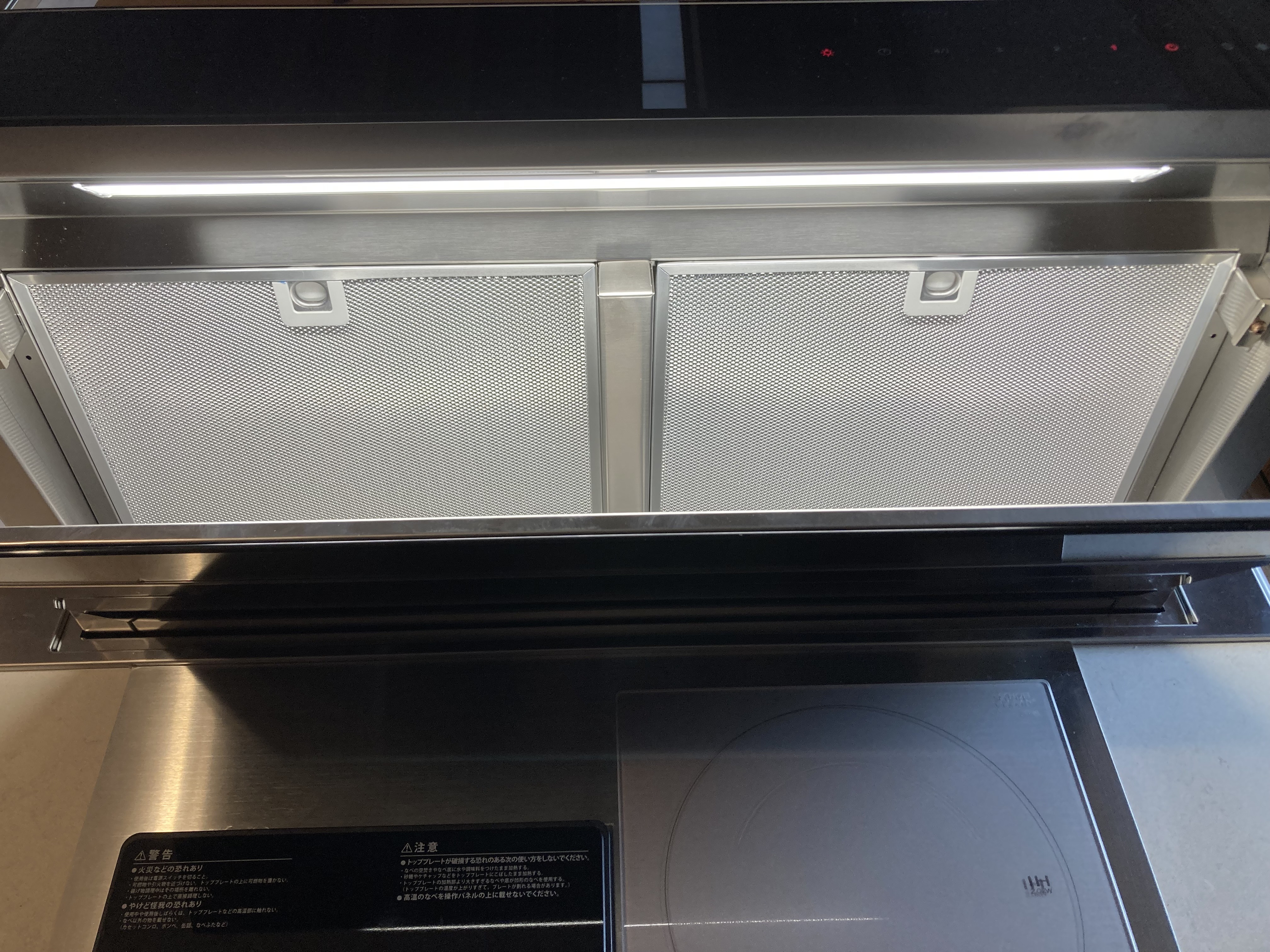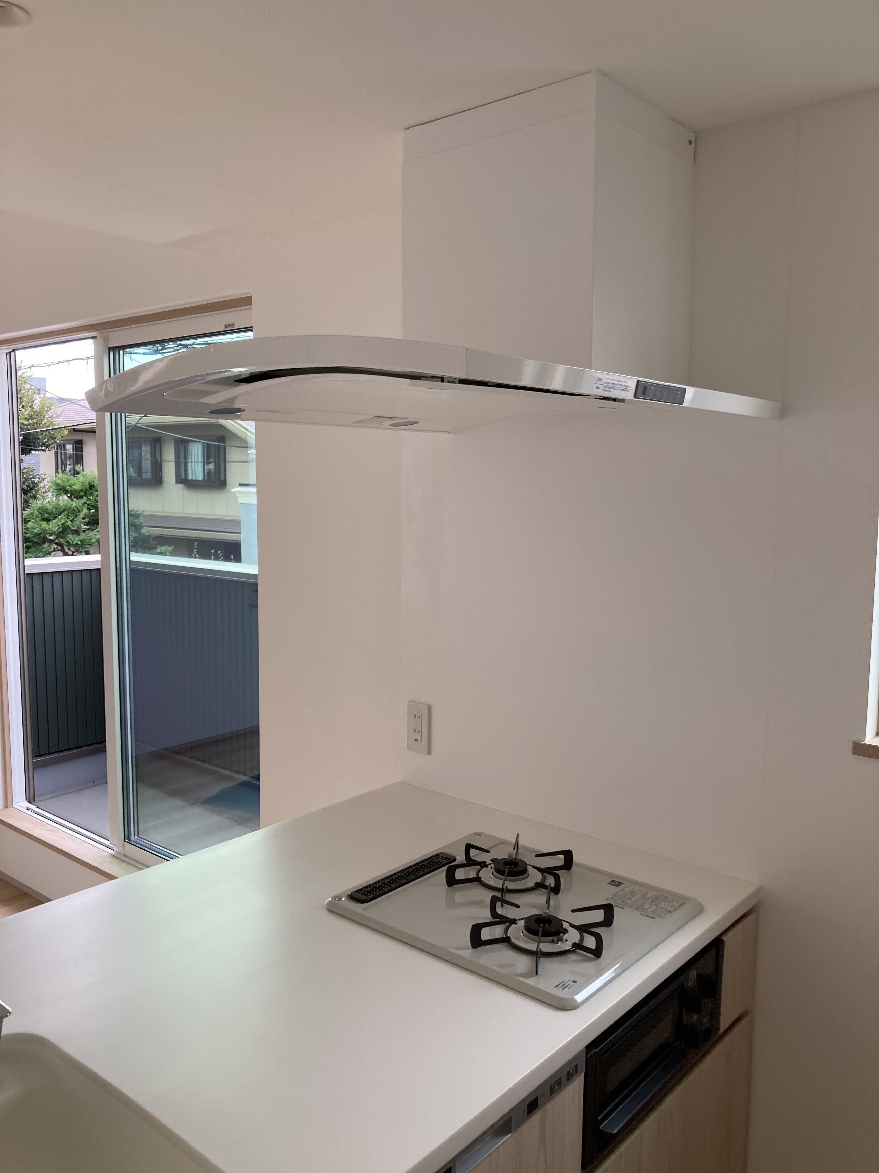 見た目もすっきり。昇降式換気扇のあるキッチン