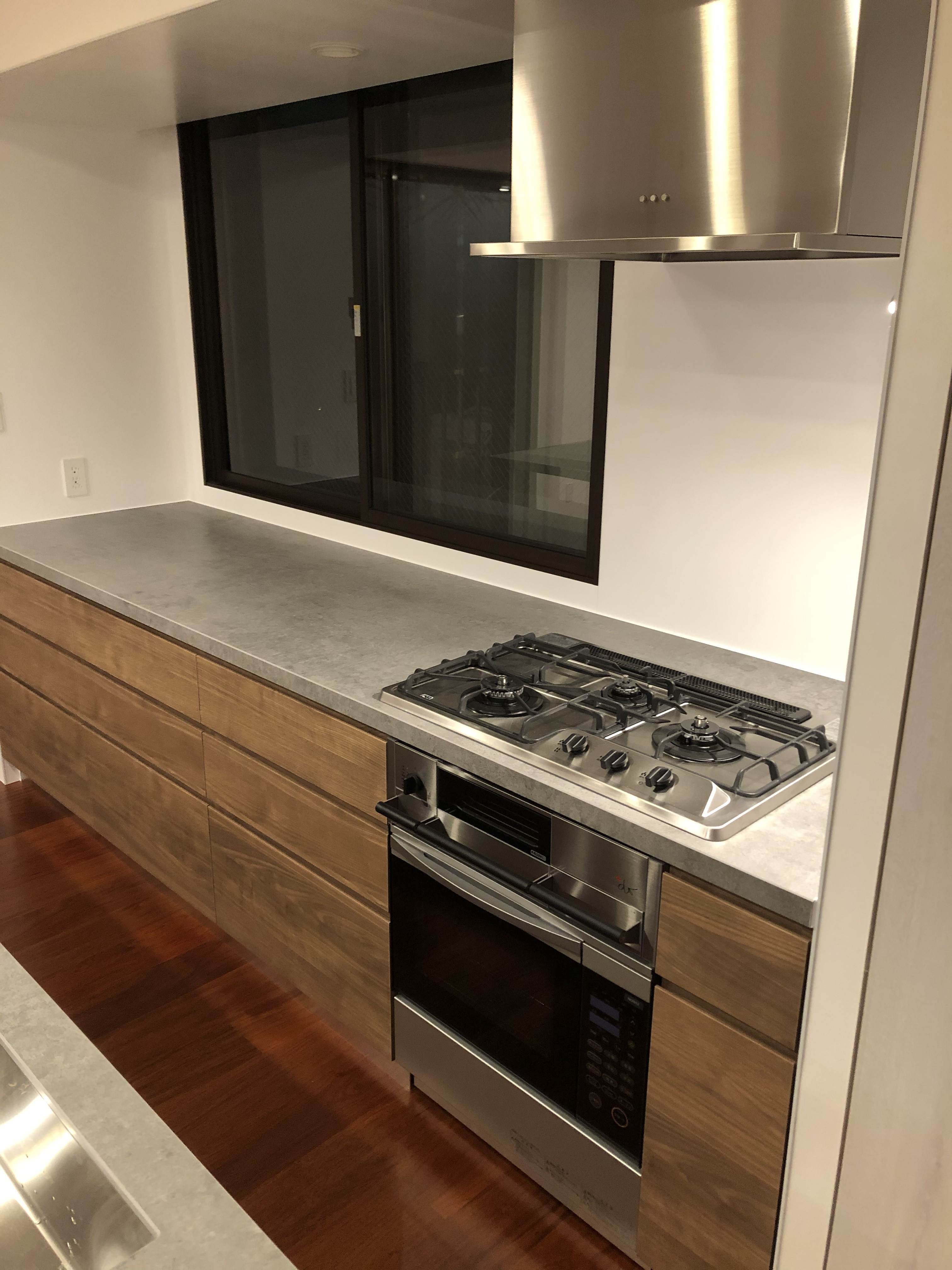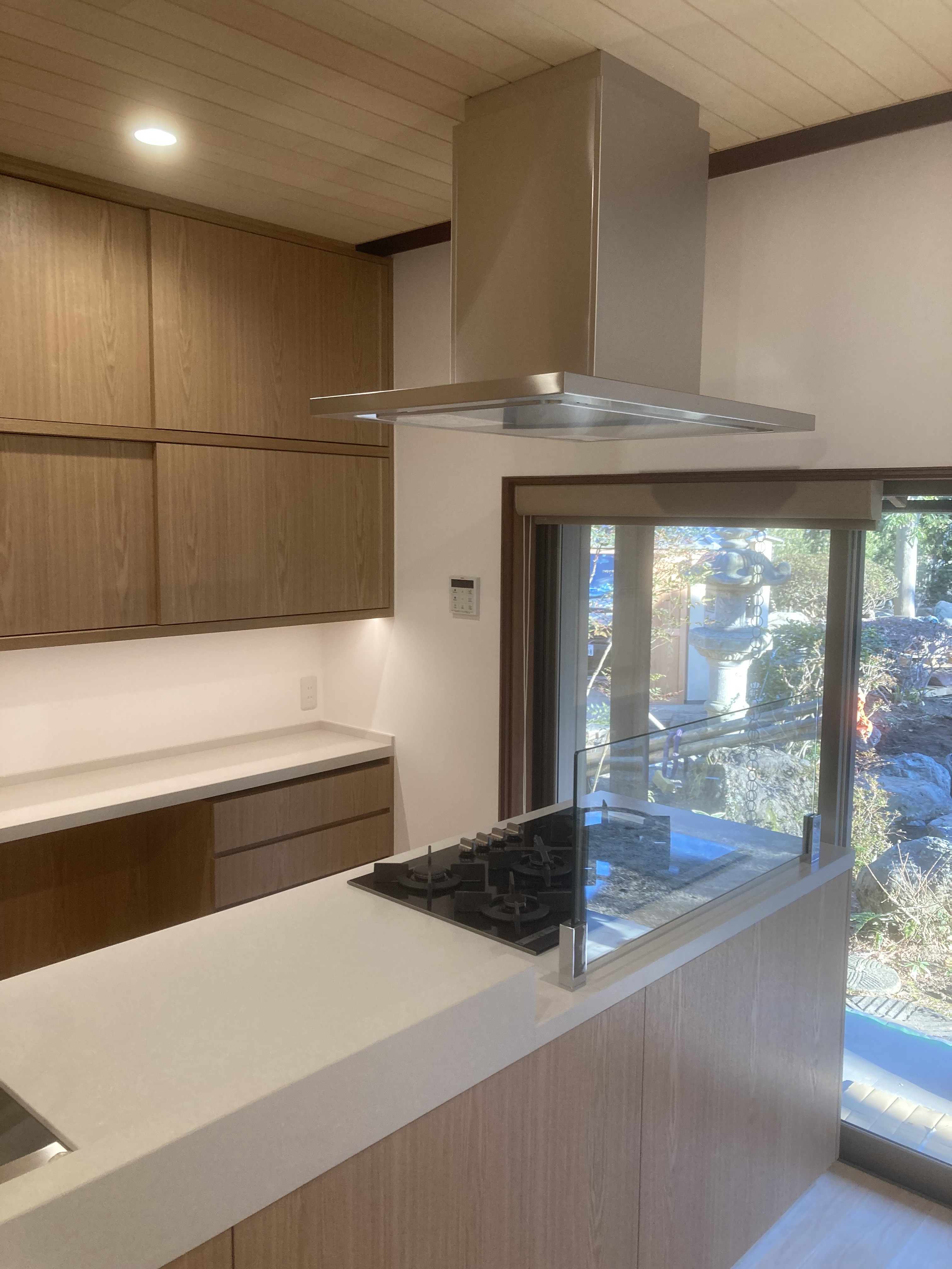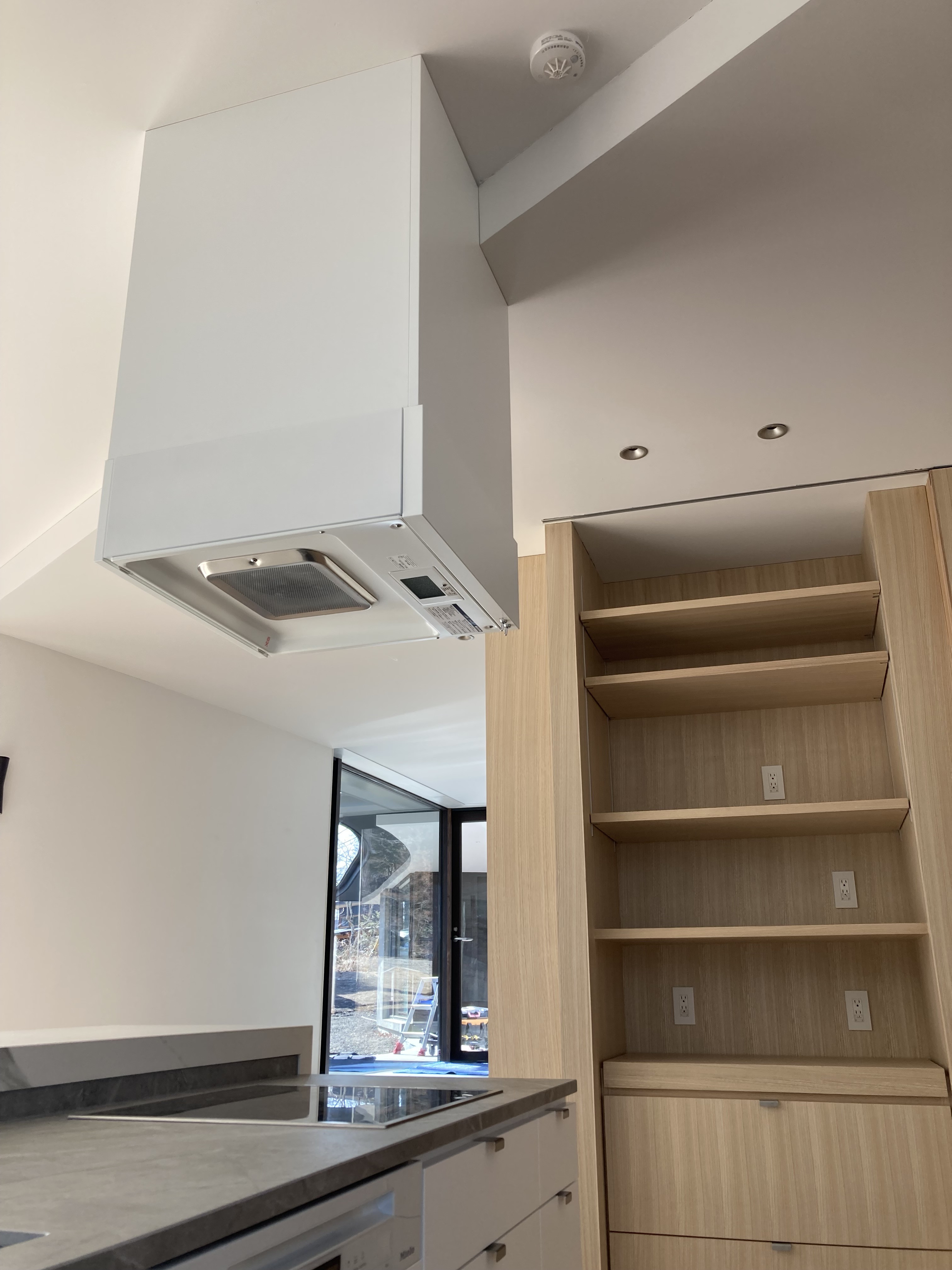見た目もすっきり。昇降式換気扇のあるキッチン