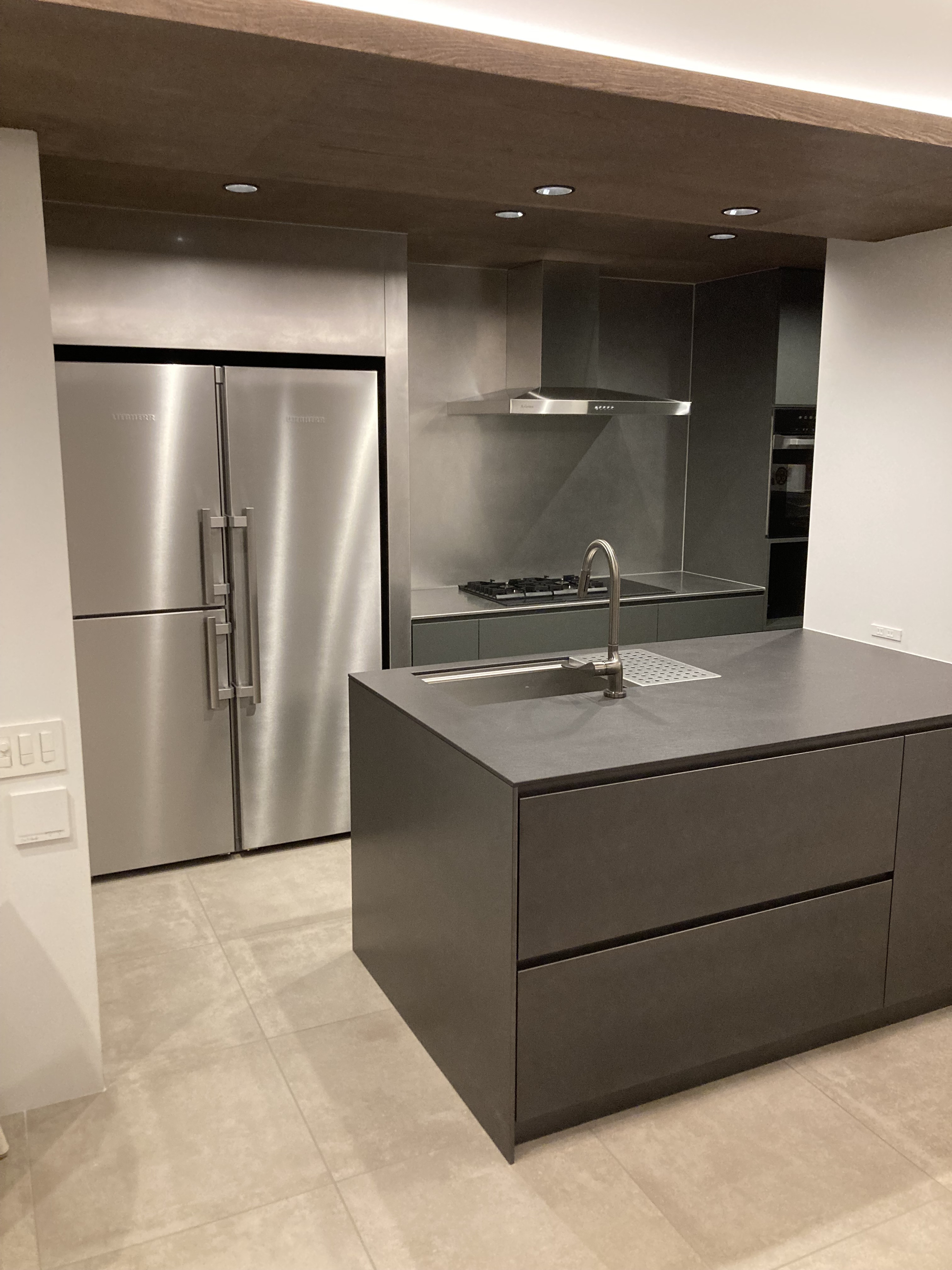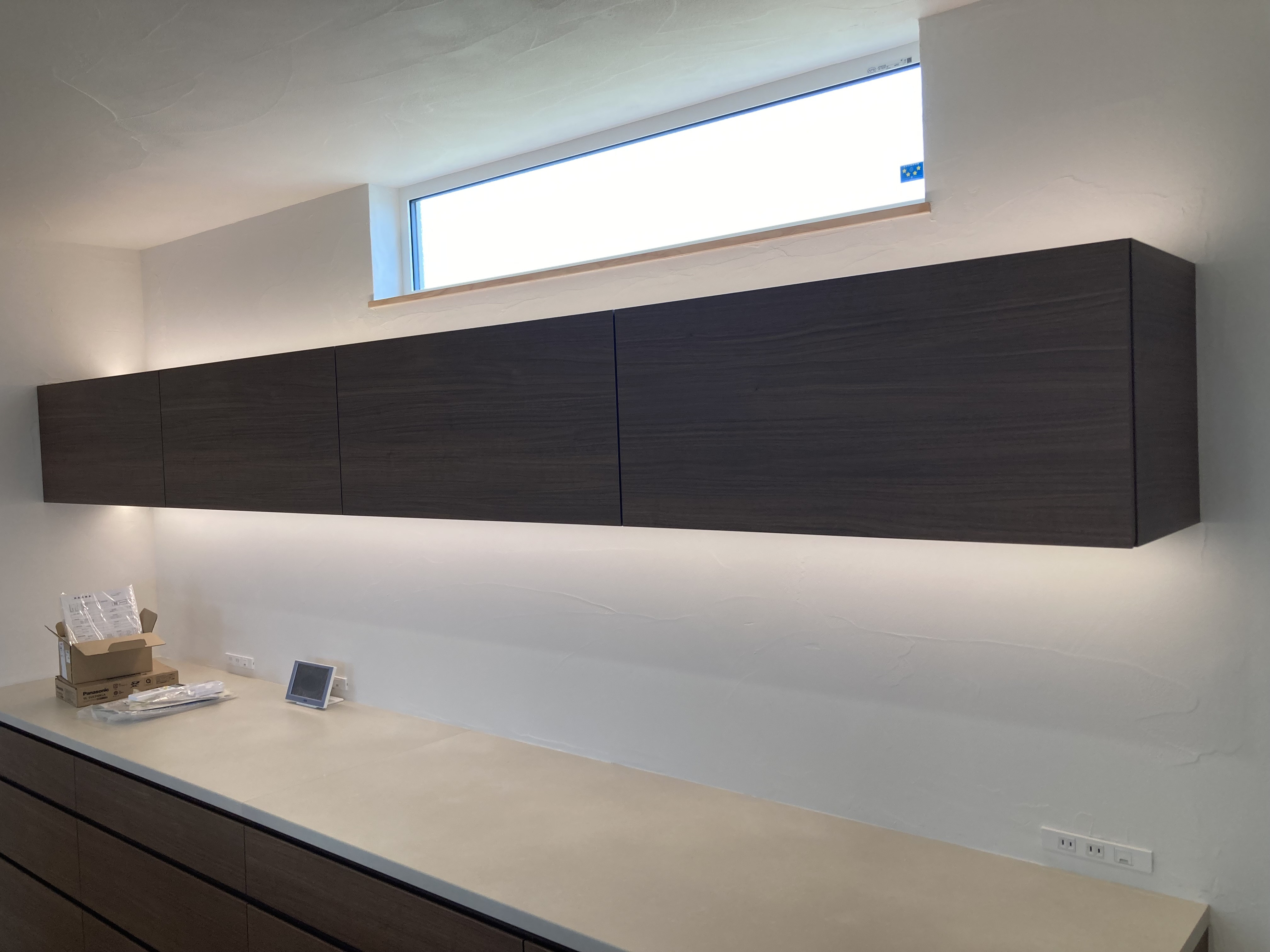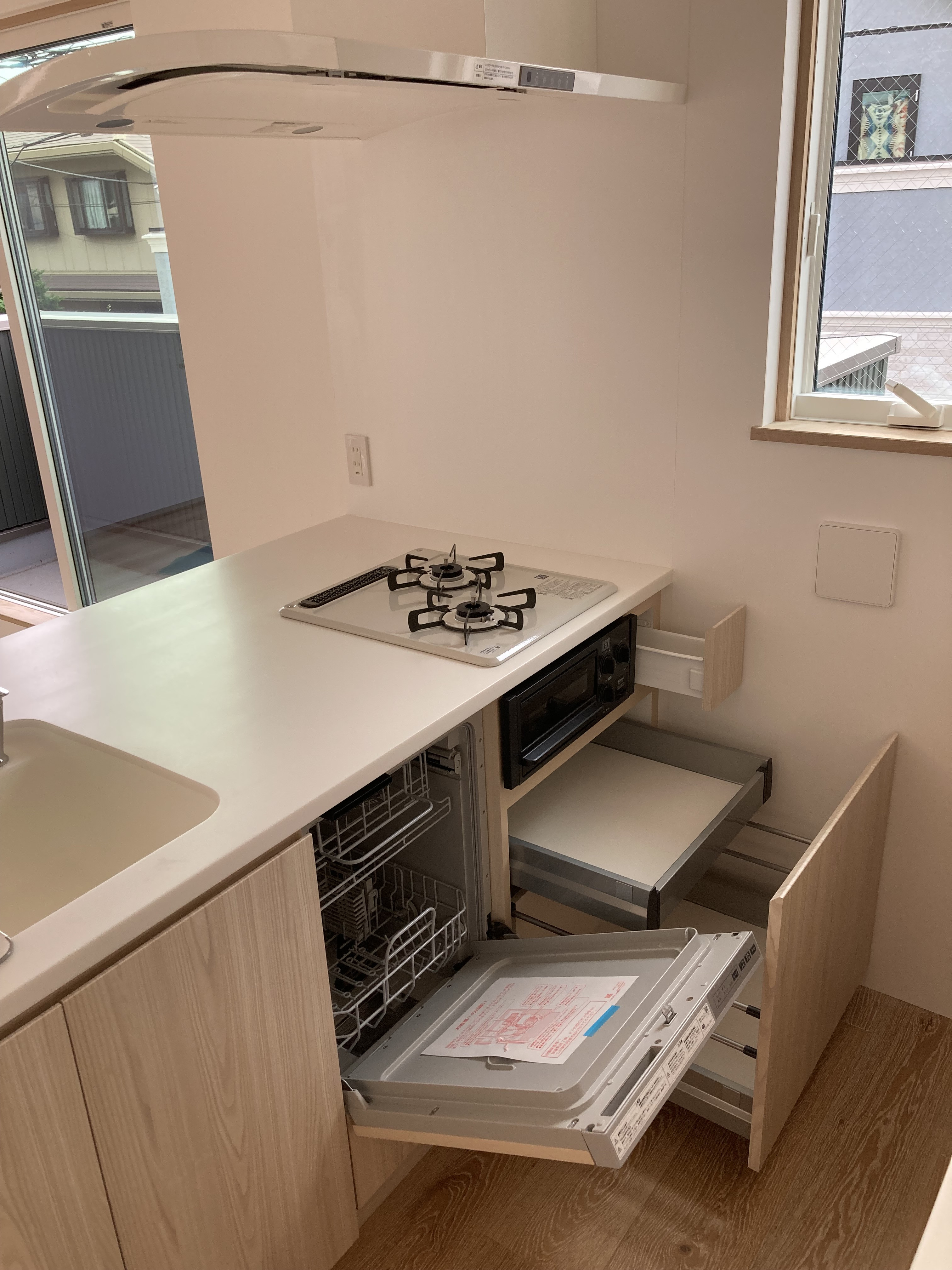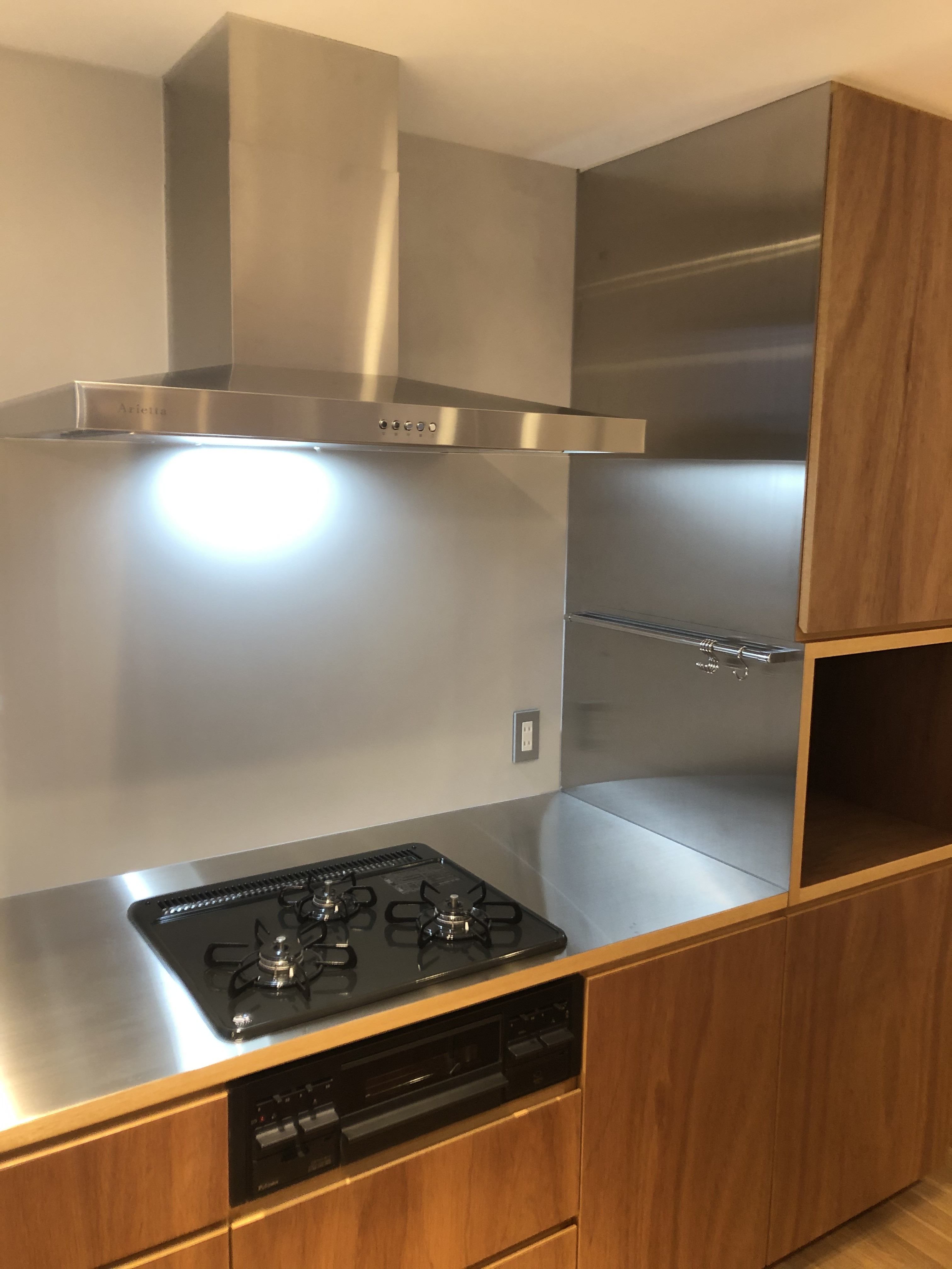 見た目もすっきり。昇降式換気扇のあるキッチン