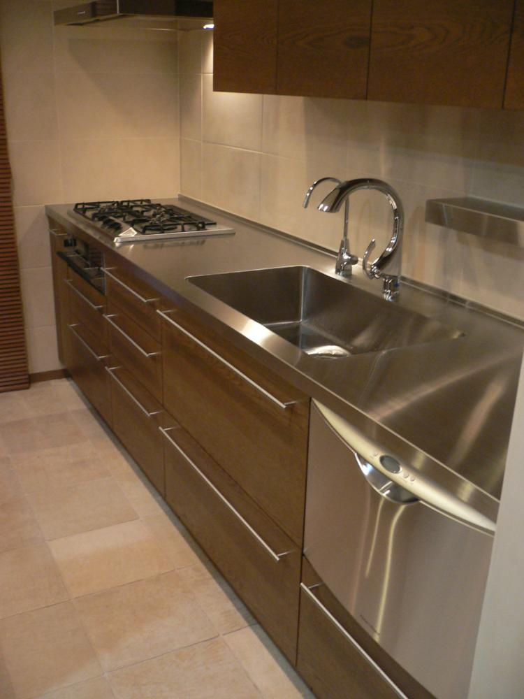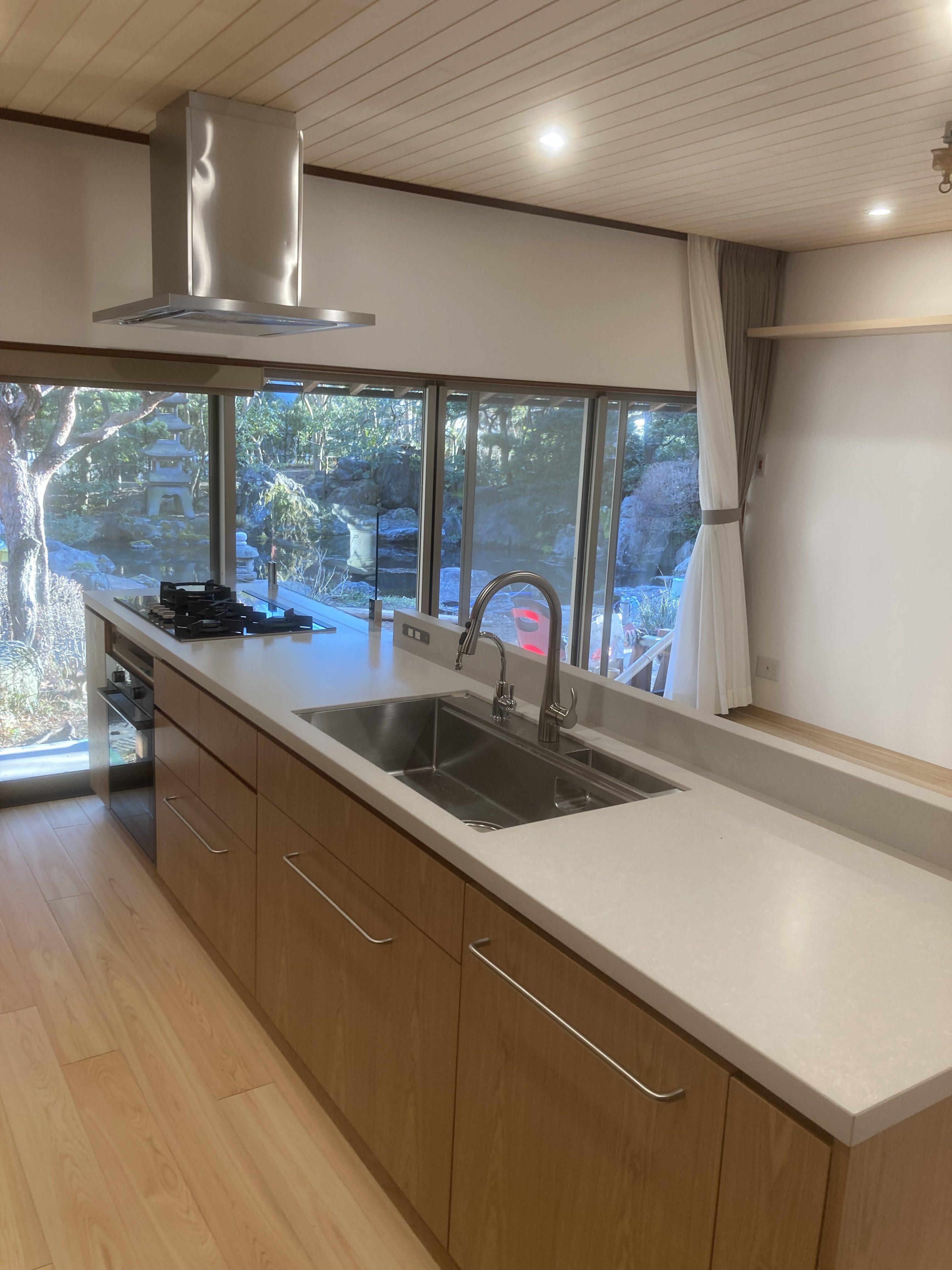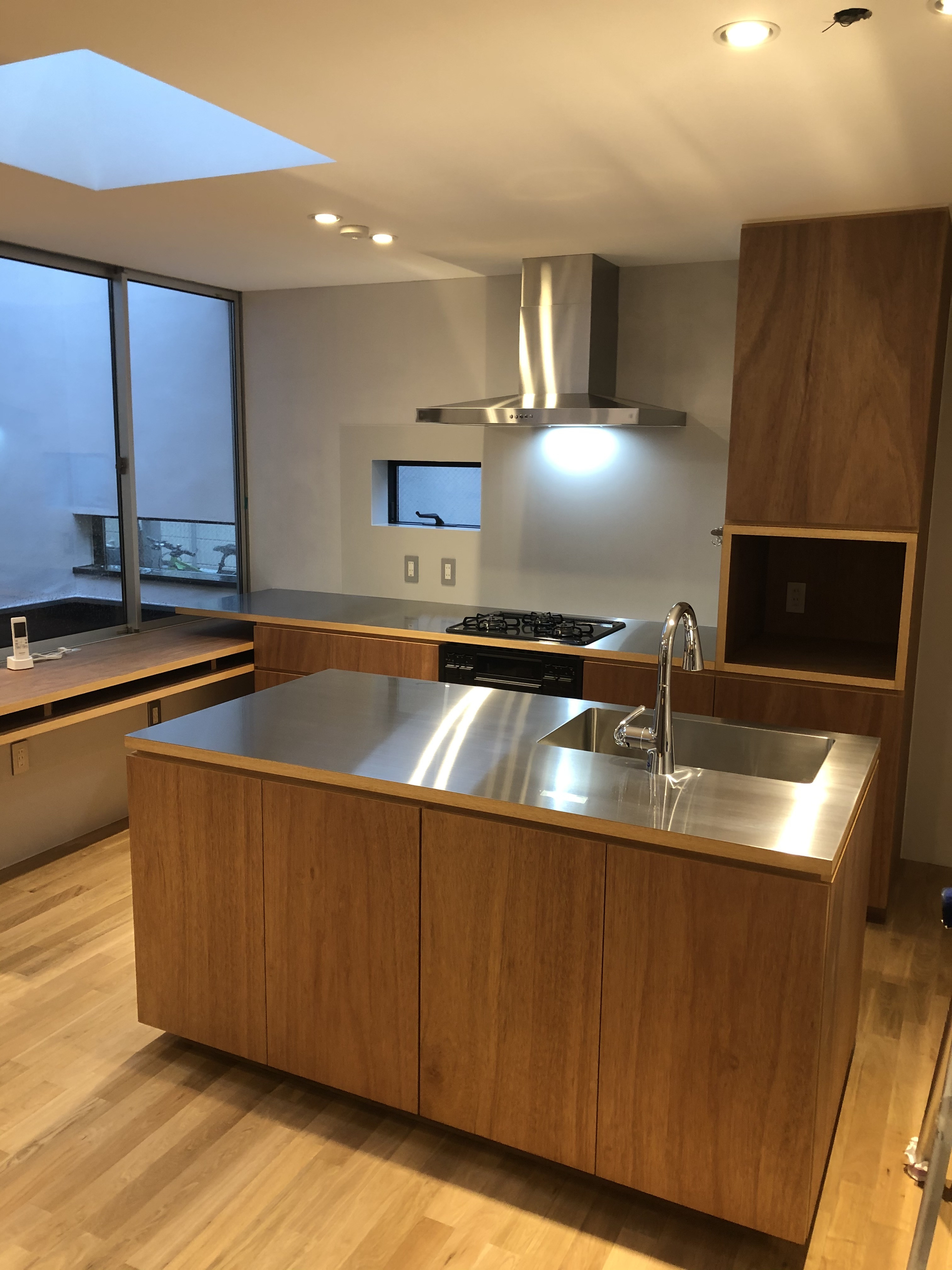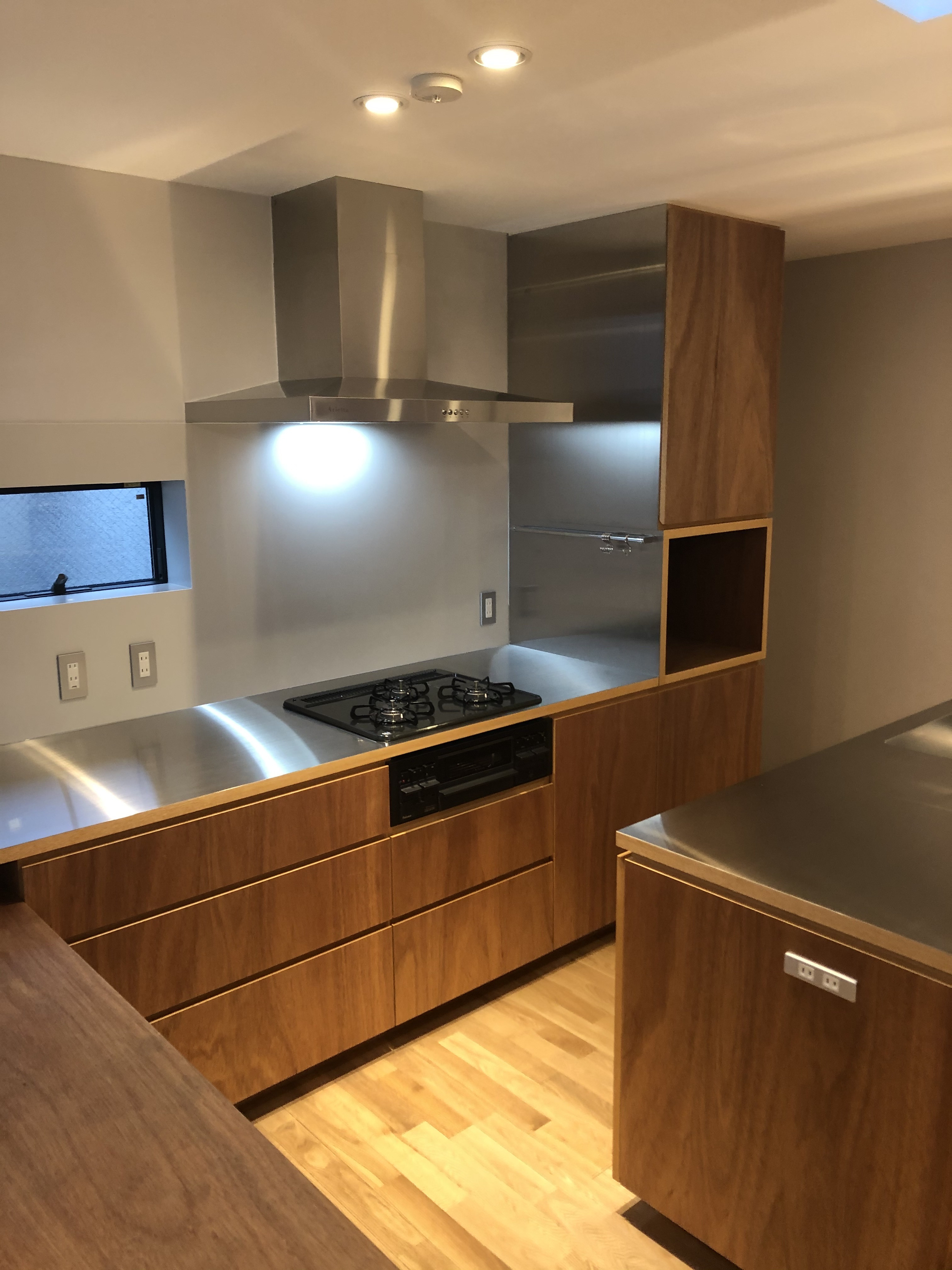 木とステンレスが織りなす洗練されたアイランドキッチン