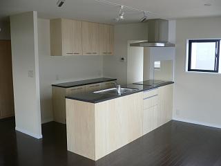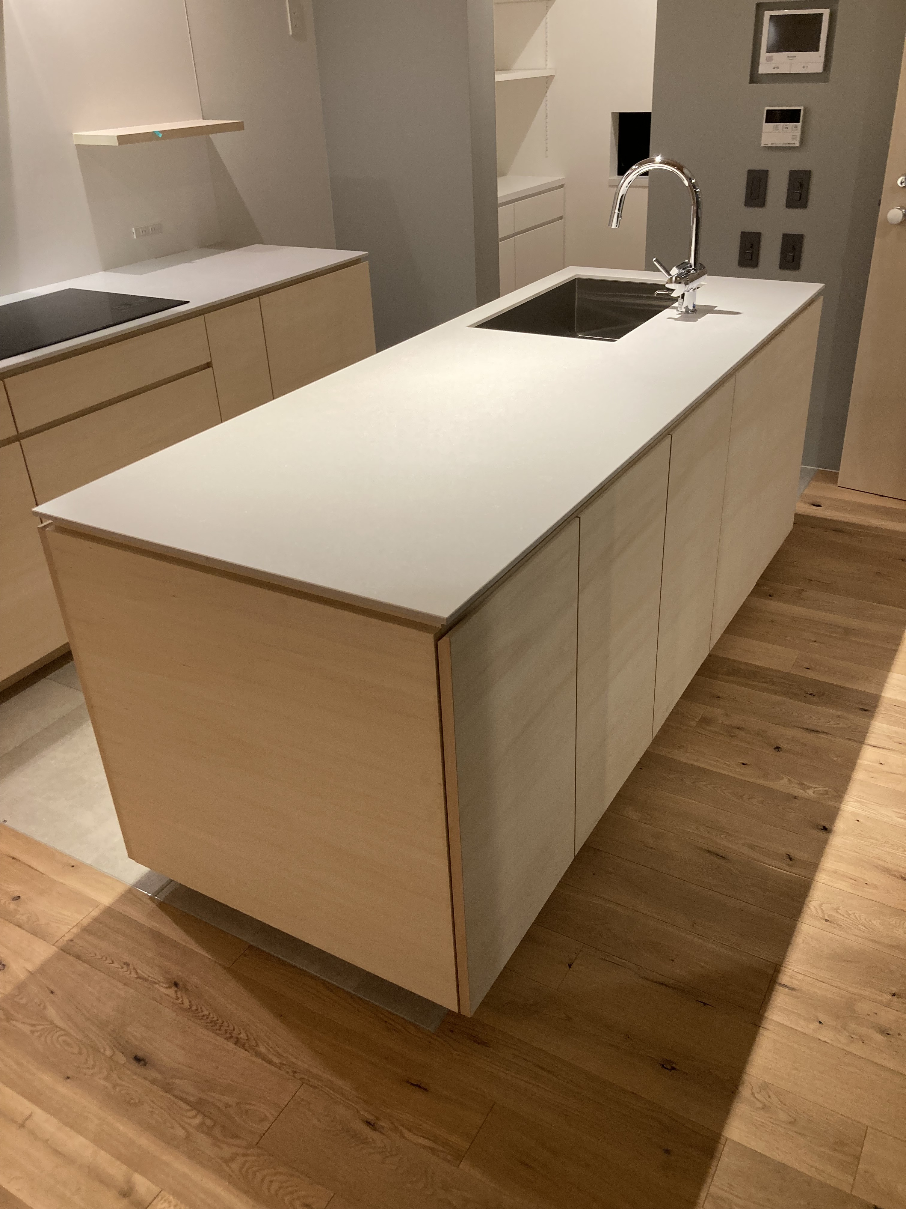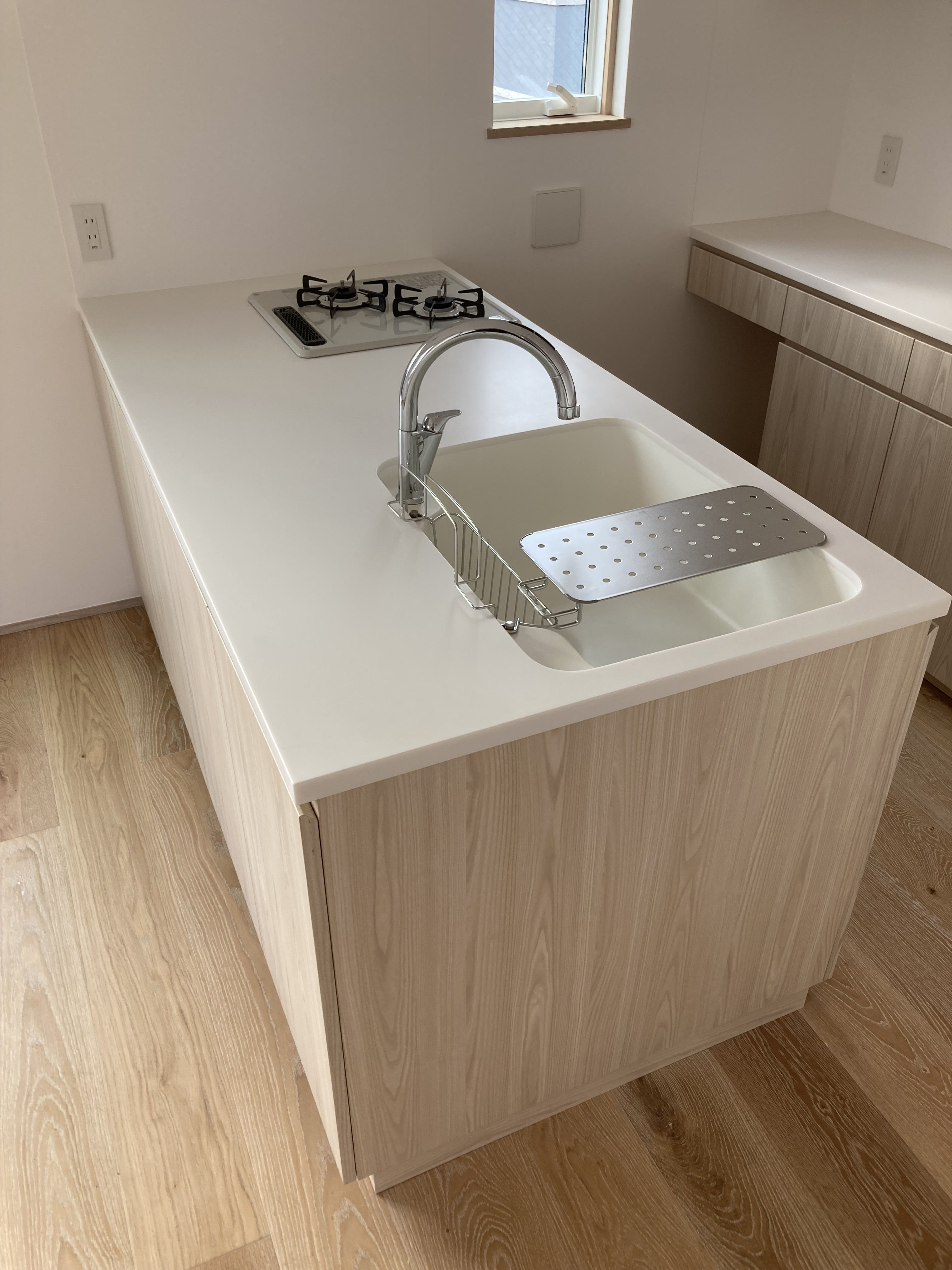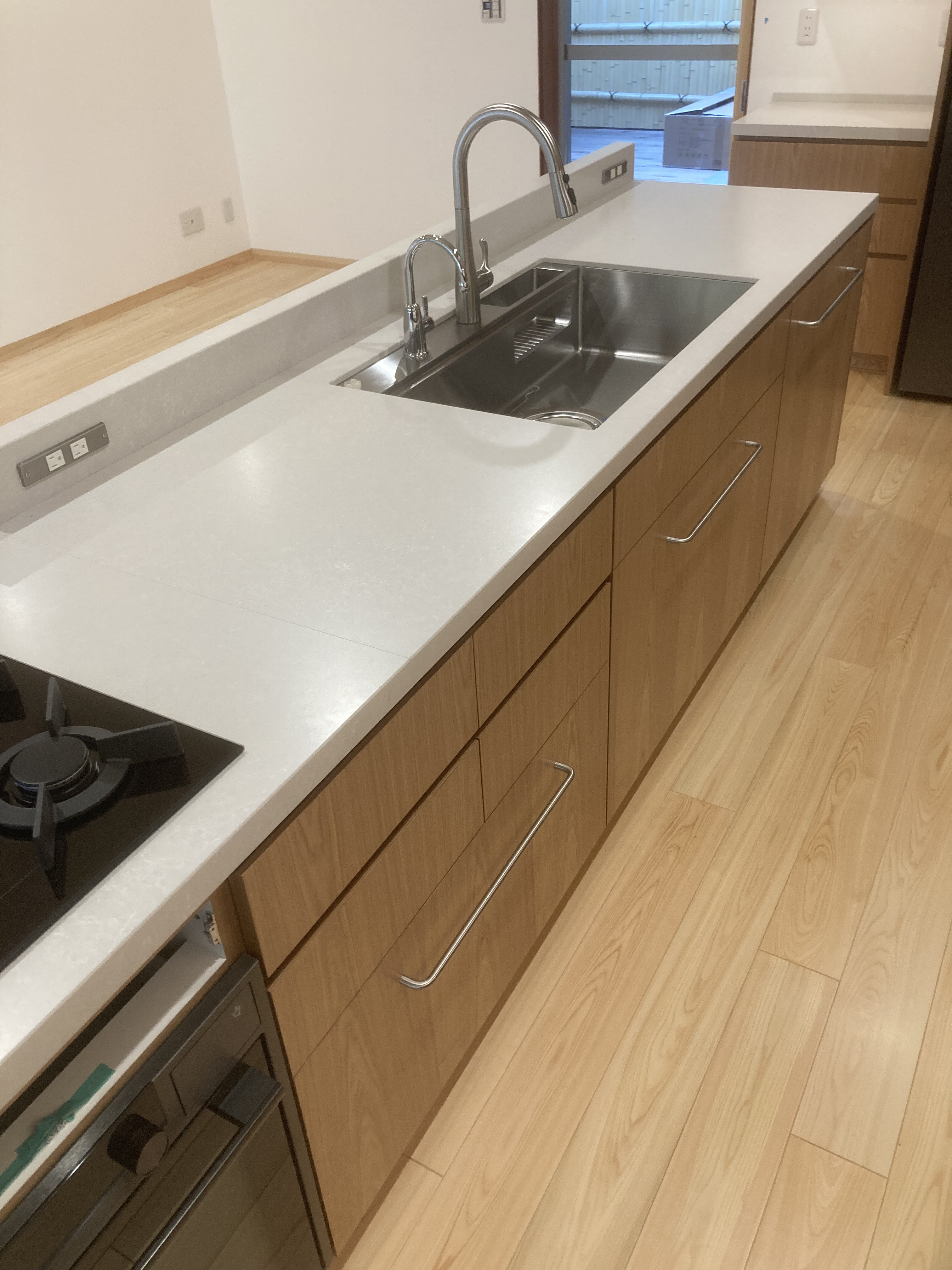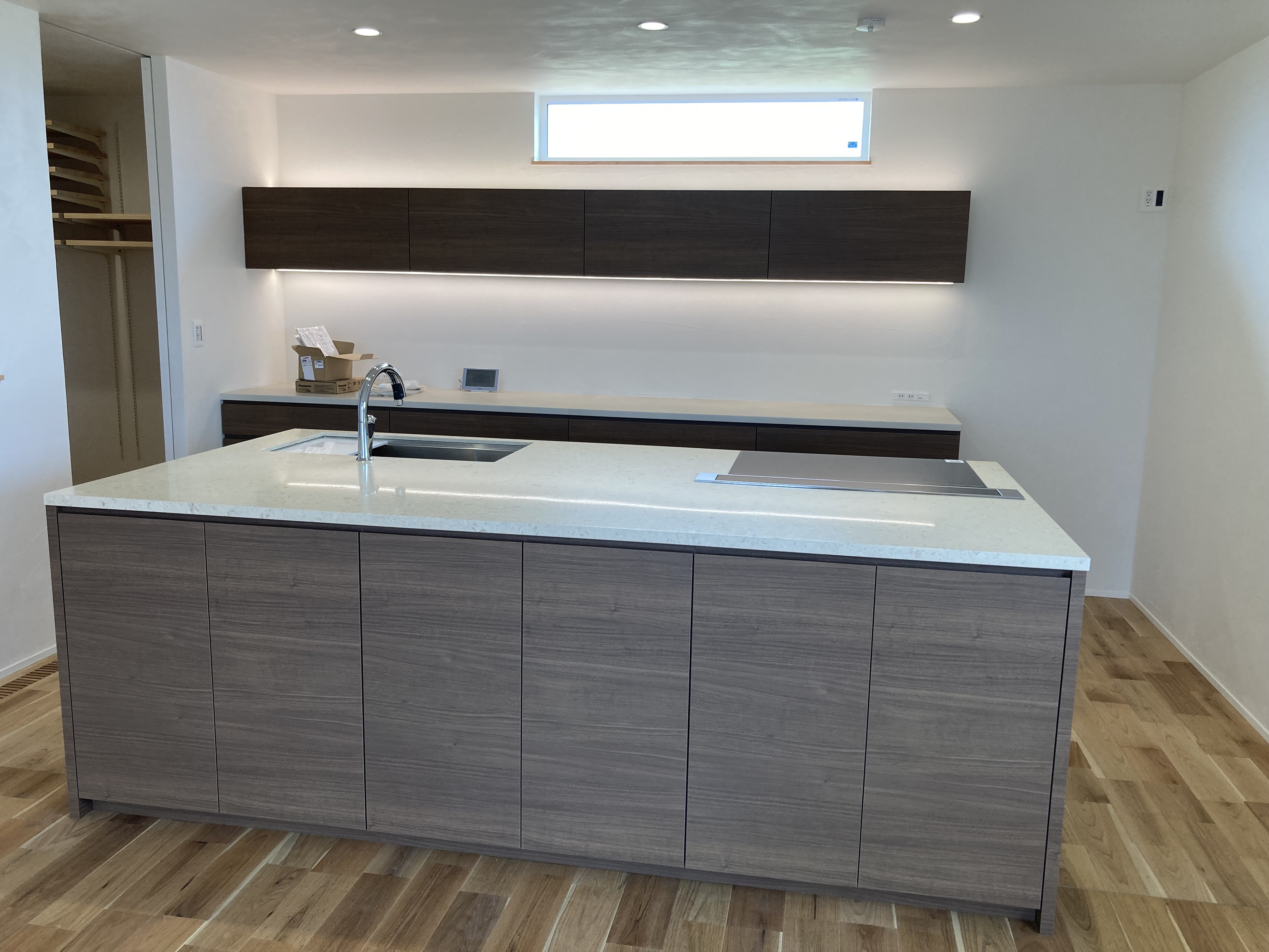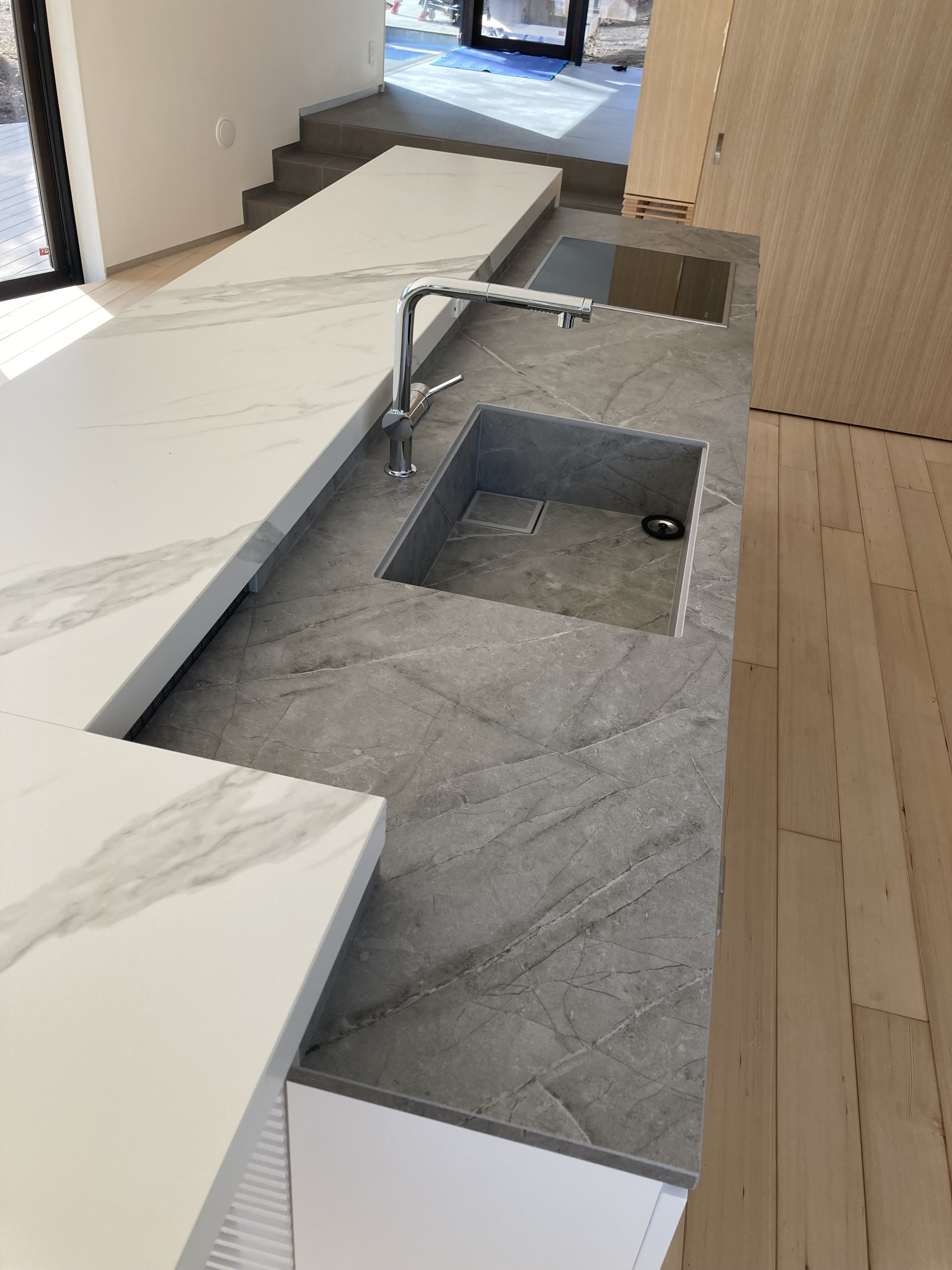 石目調の人造大理石で明るく清潔感のあるアイランドキッチン