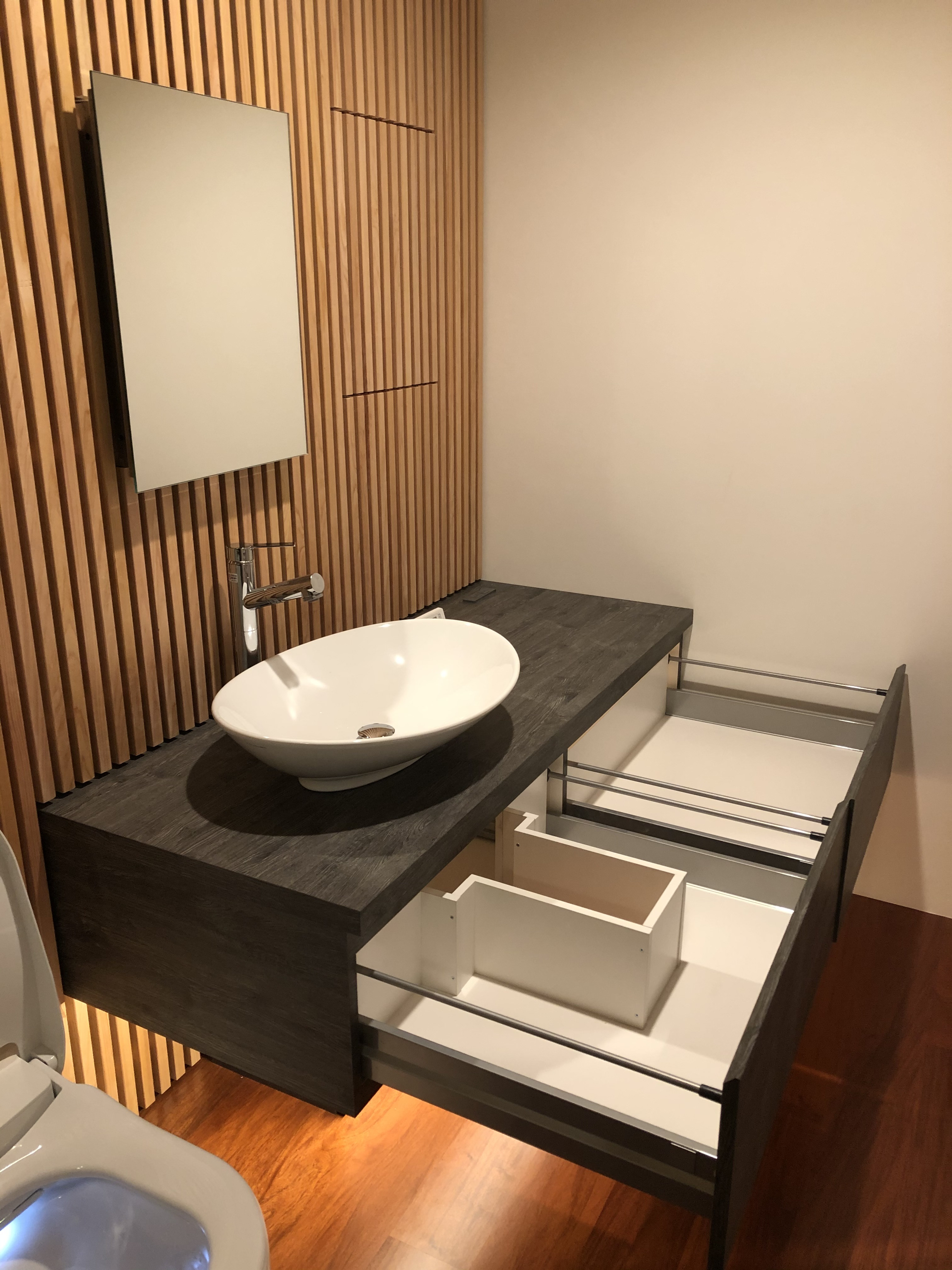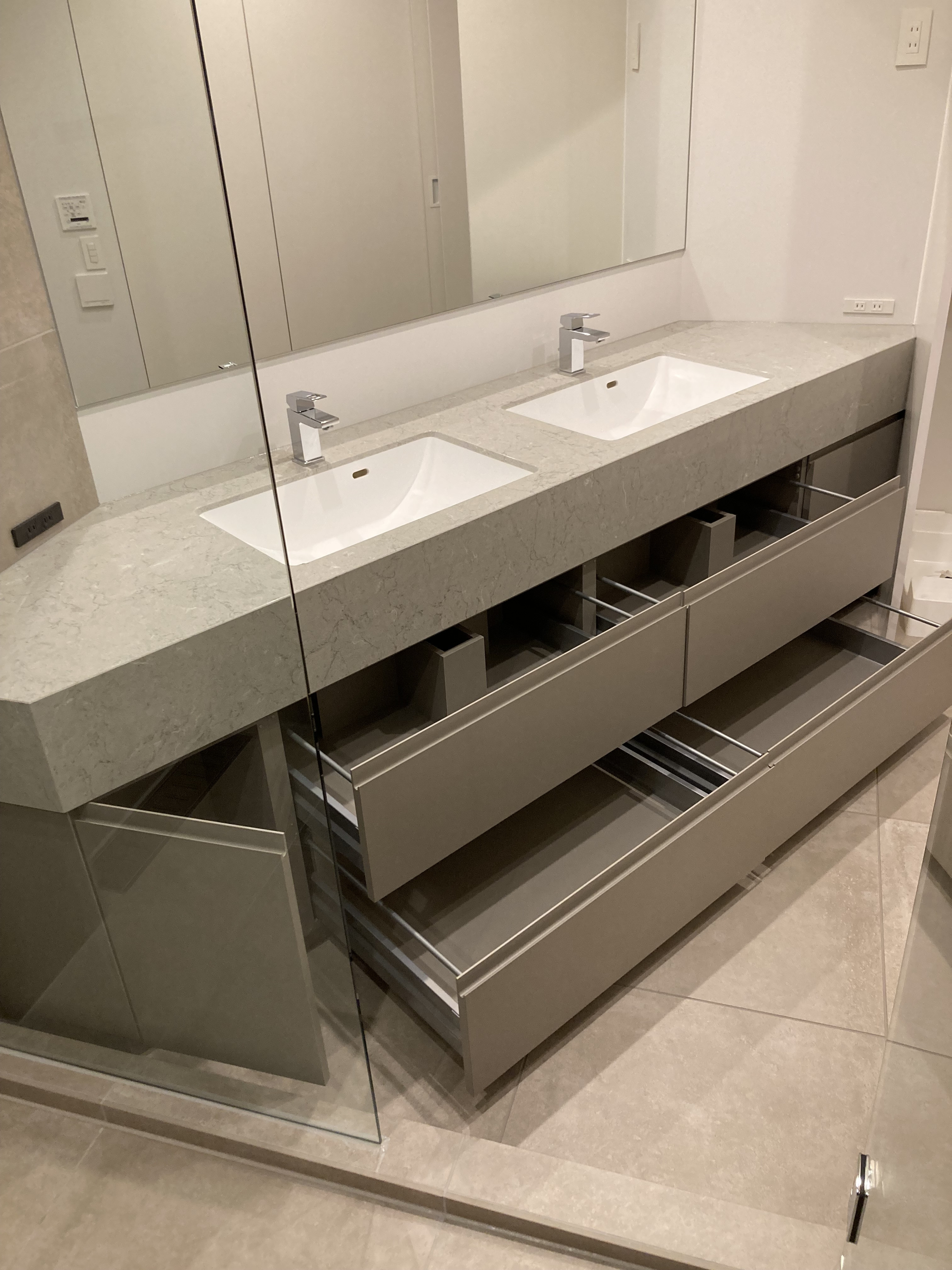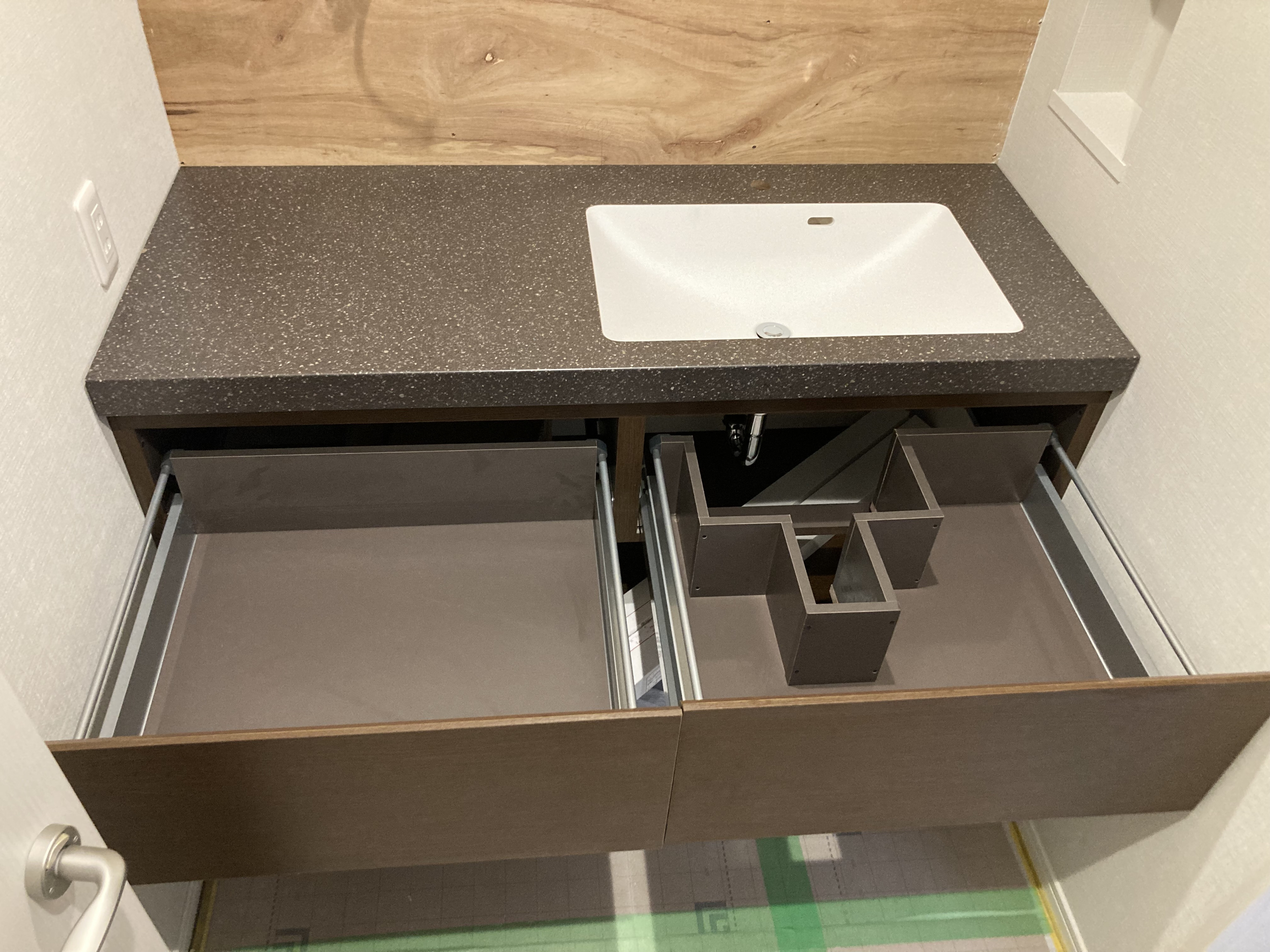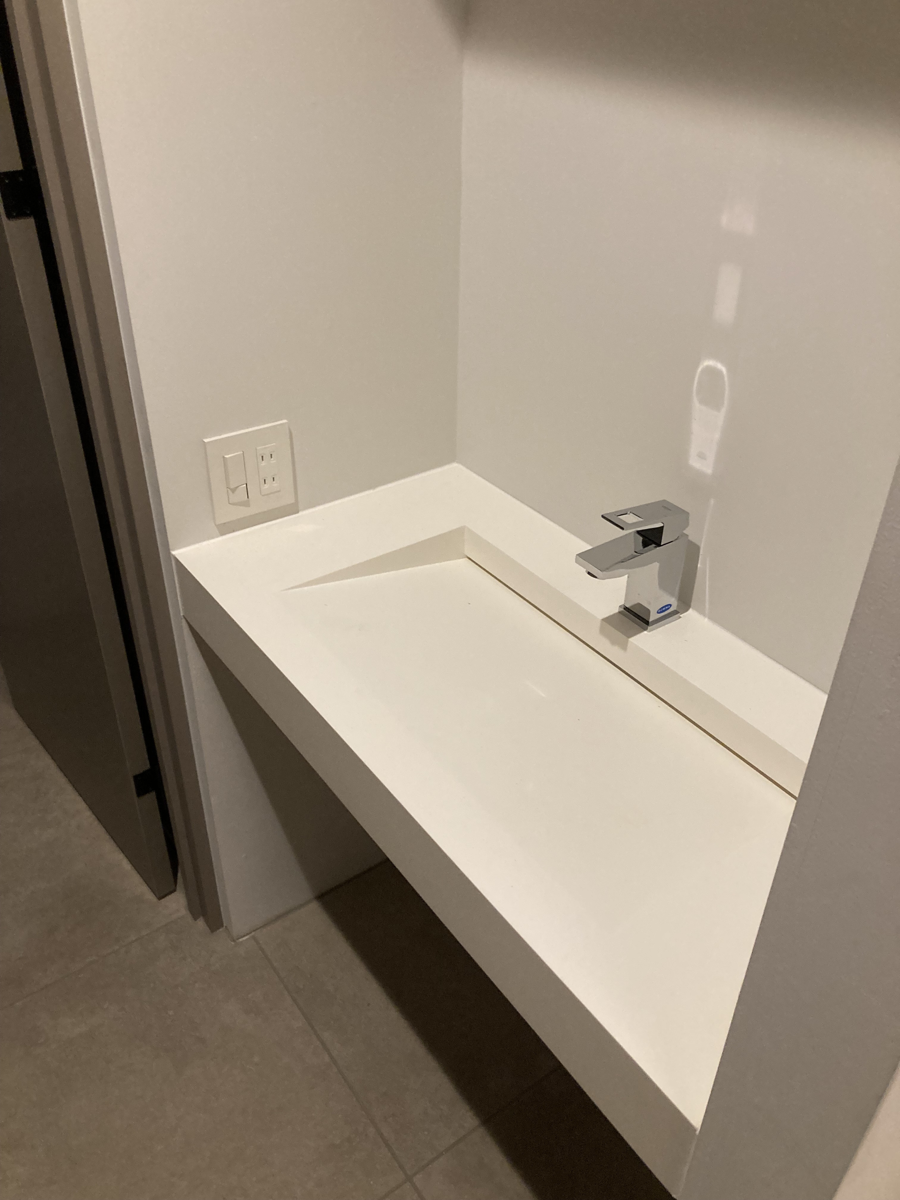 洗面ボウルとカウンターの継ぎ目がないシームレスデザイン