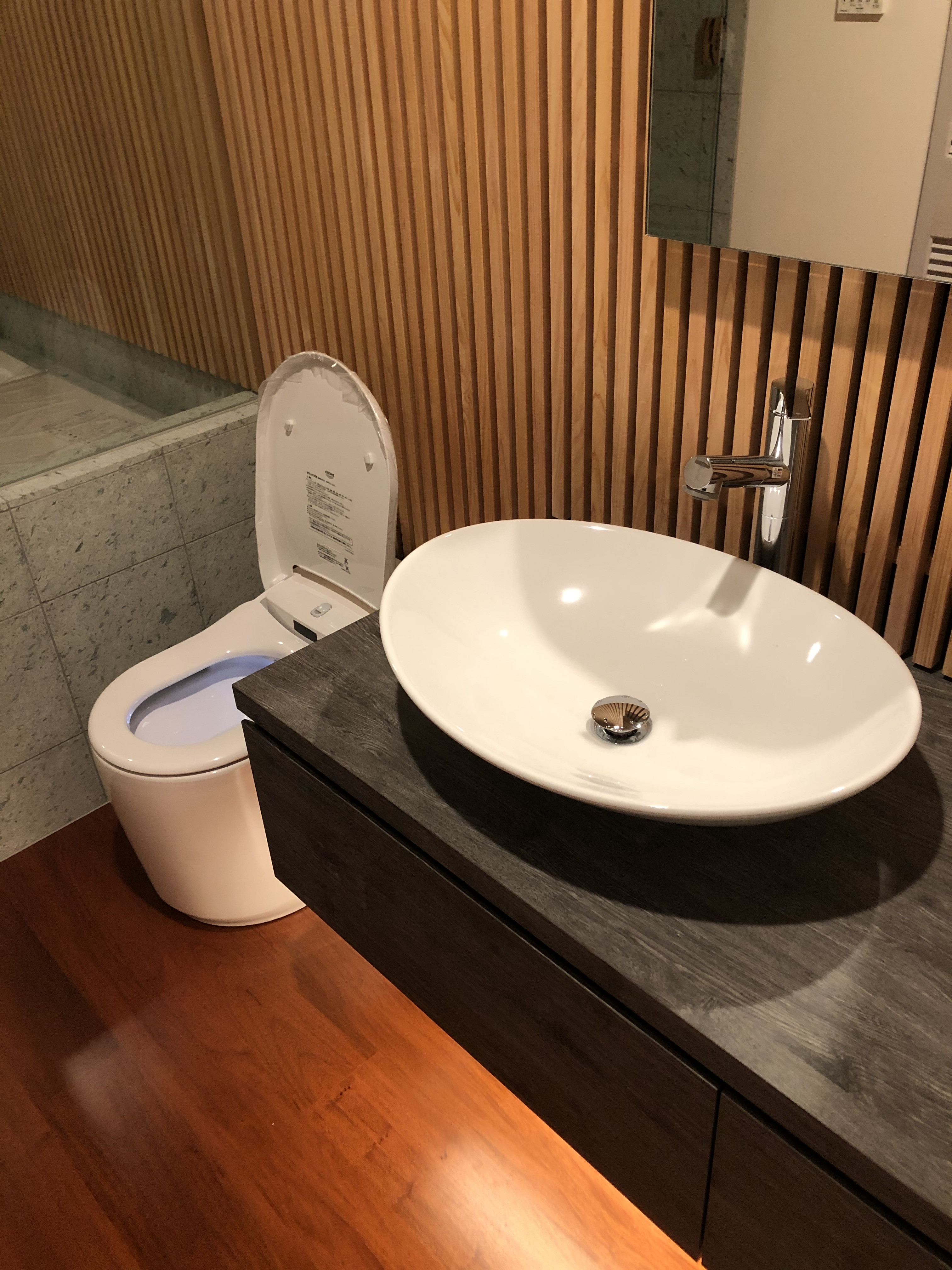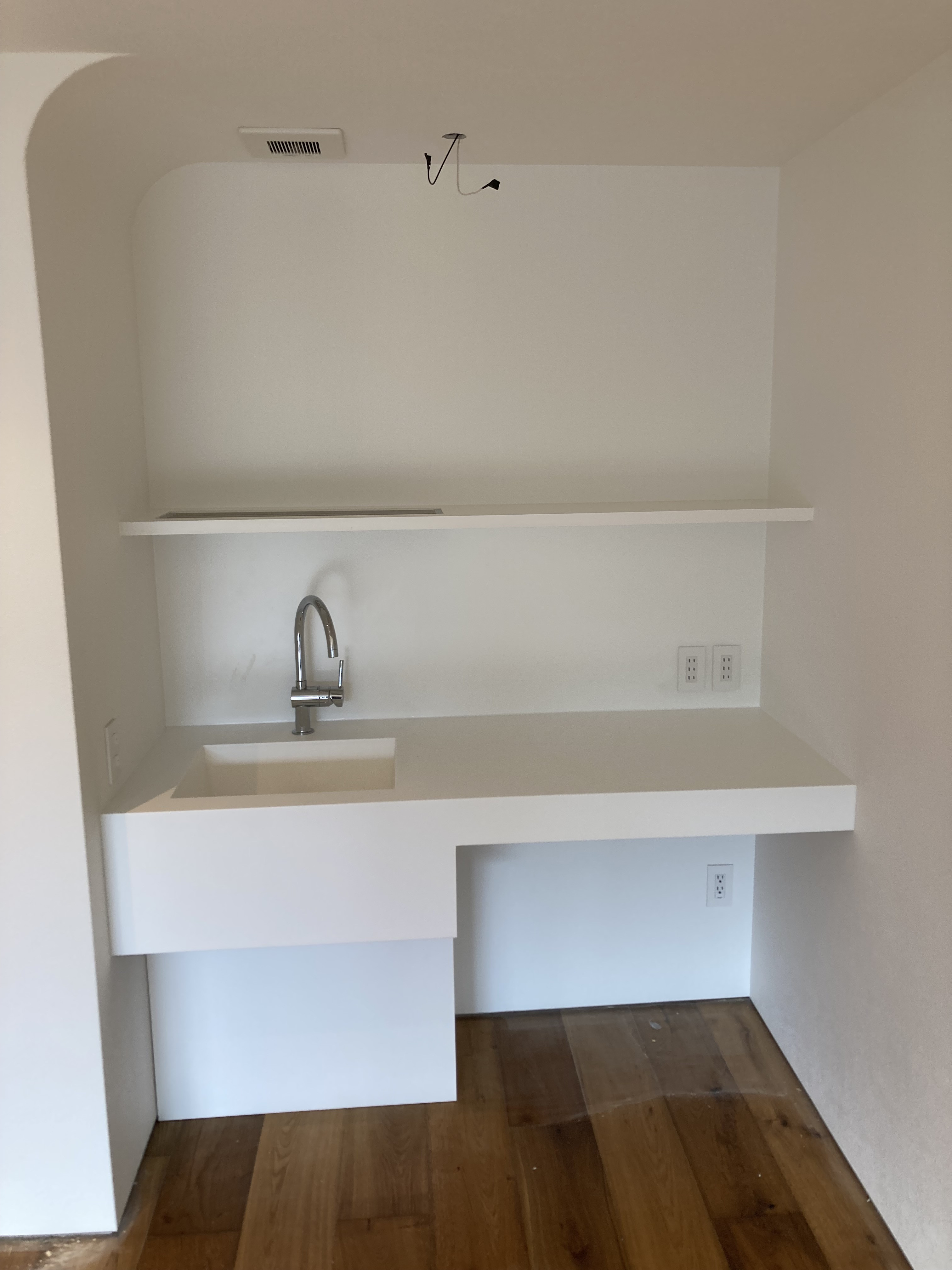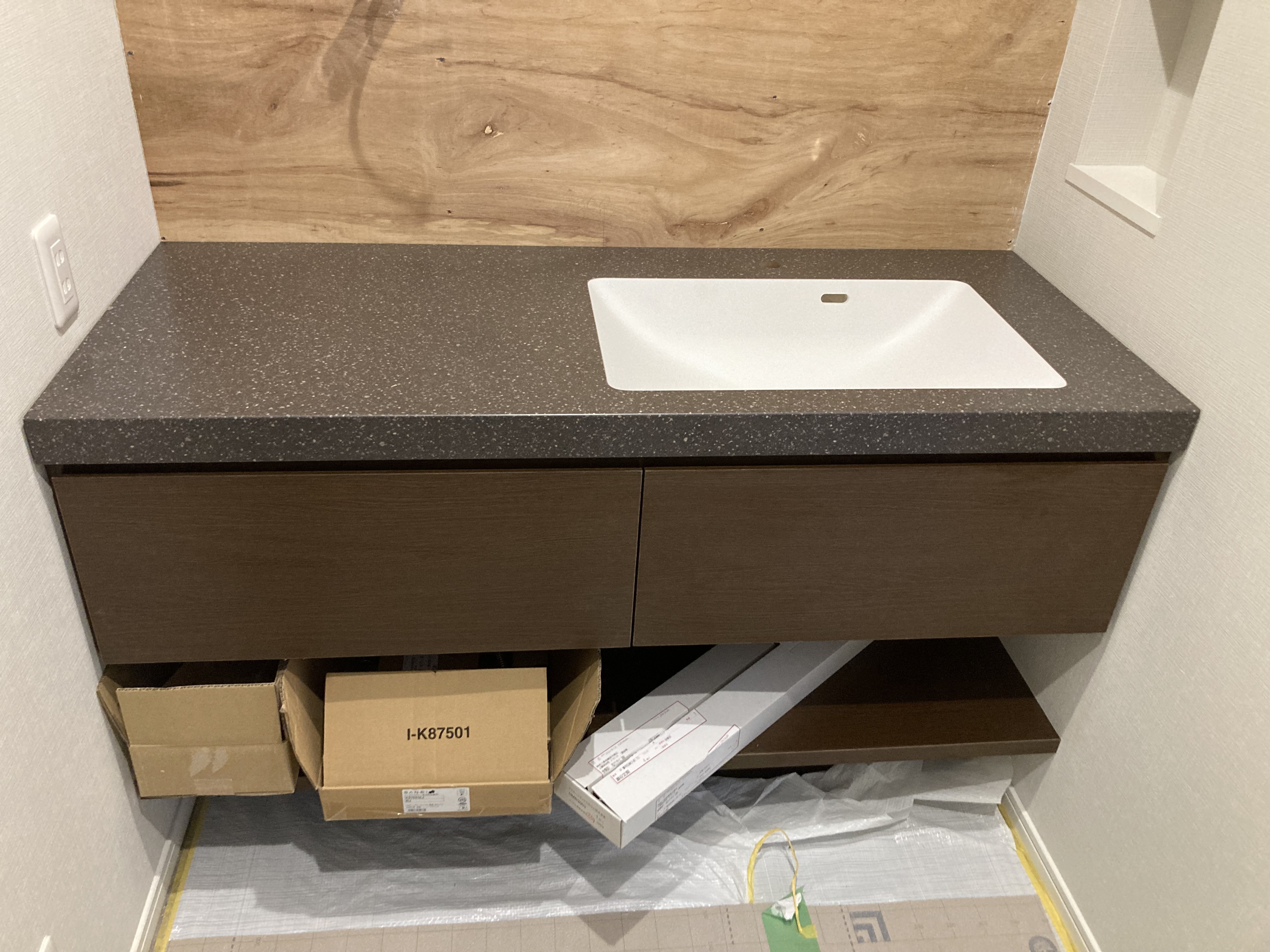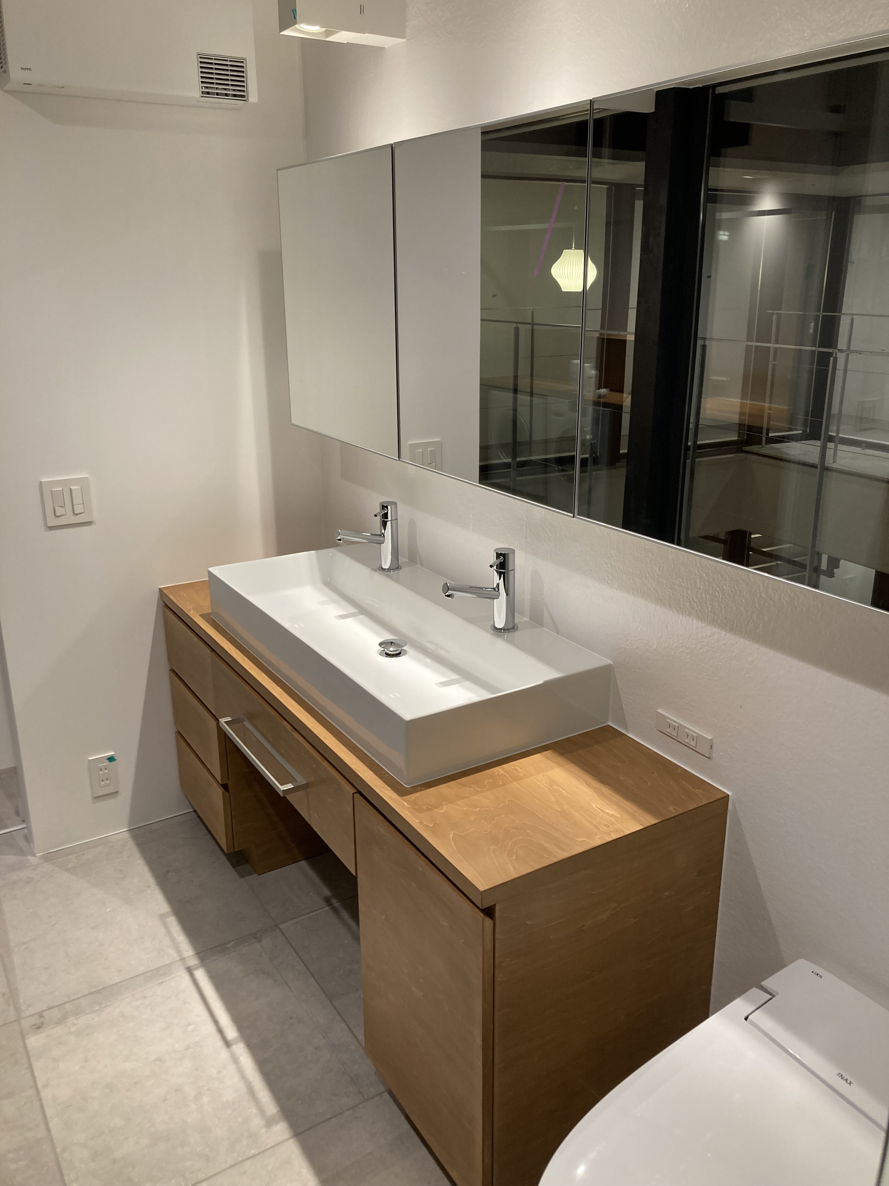 洗面ボウルとカウンターの継ぎ目がないシームレスデザイン