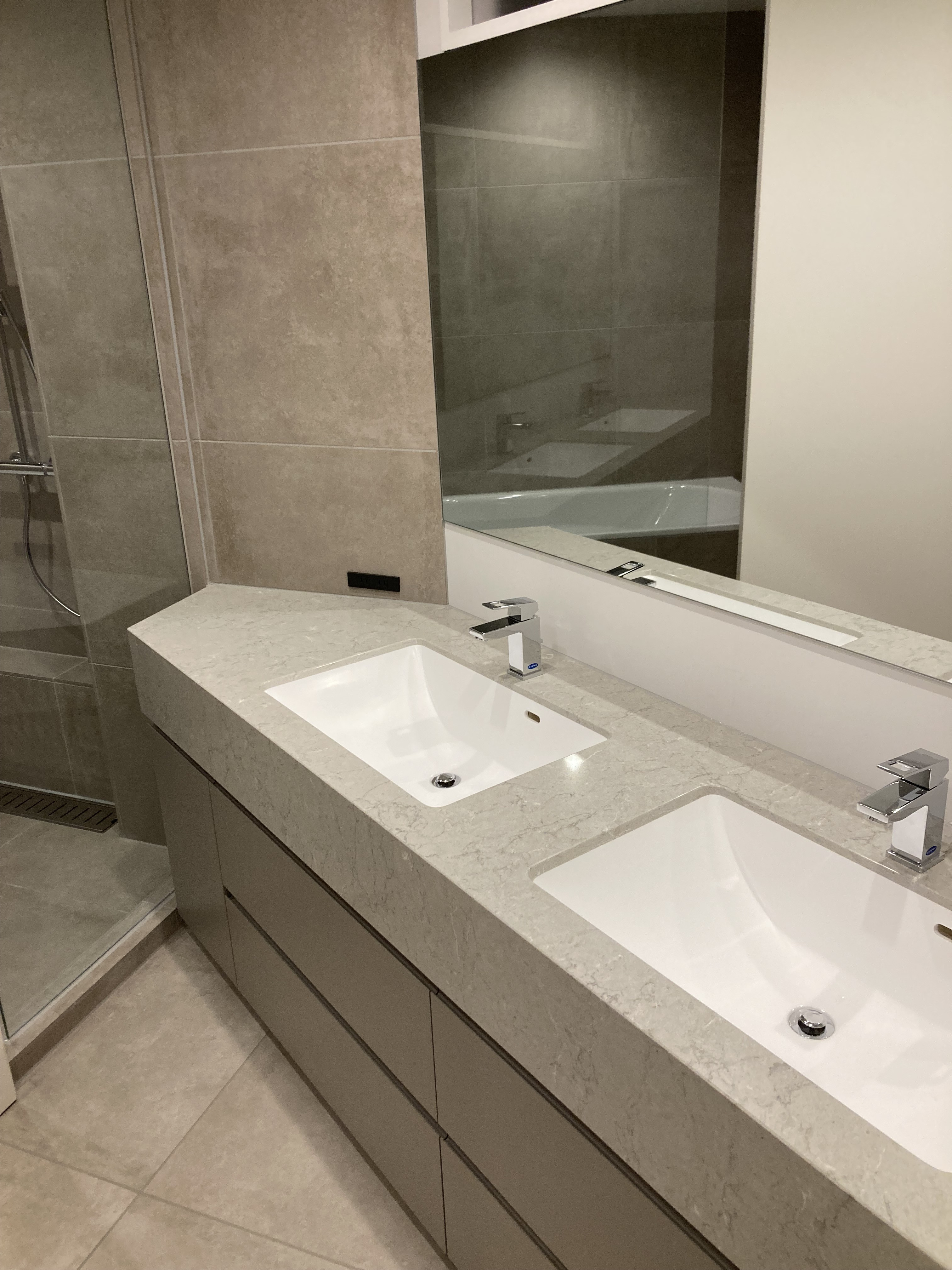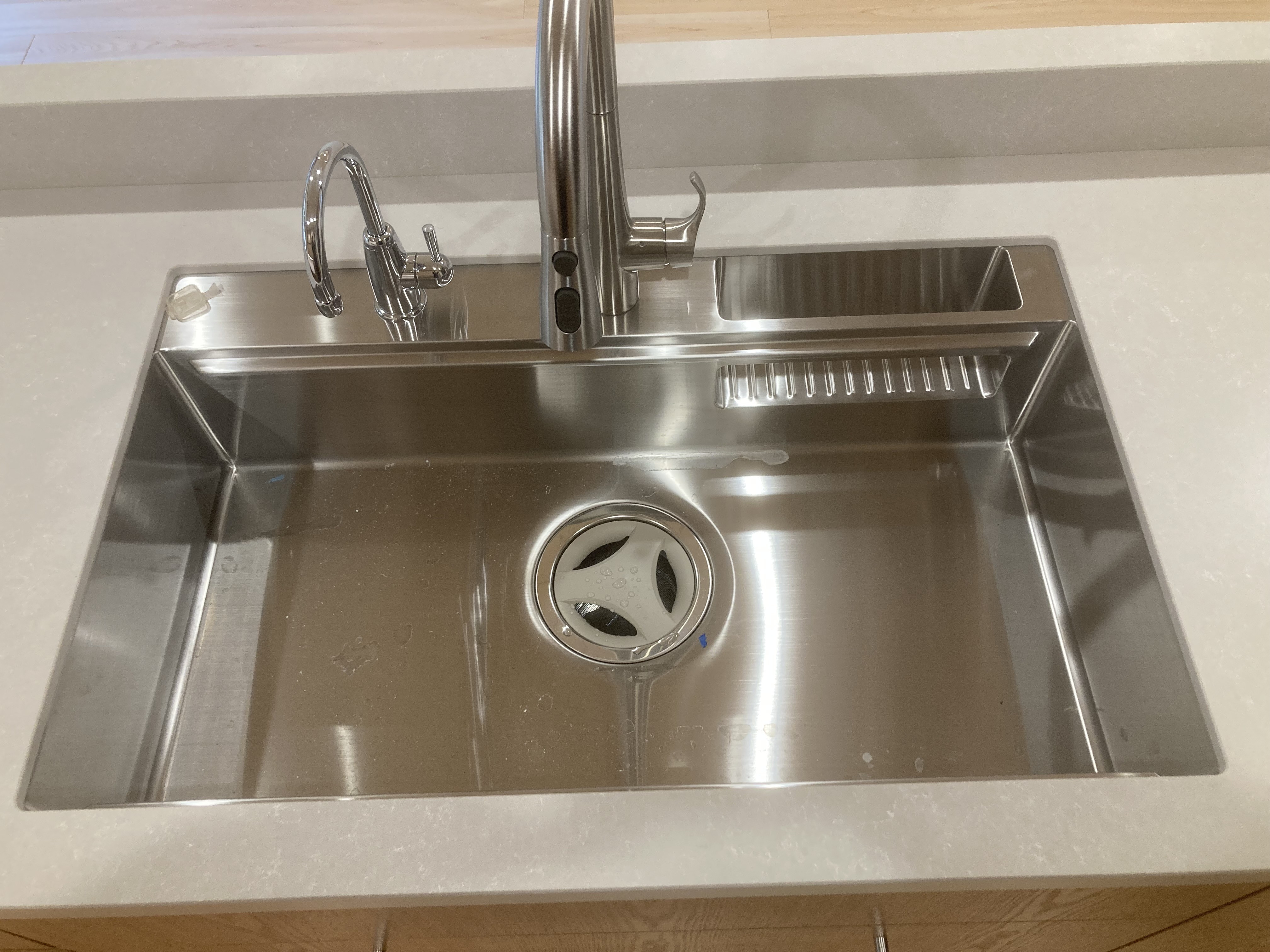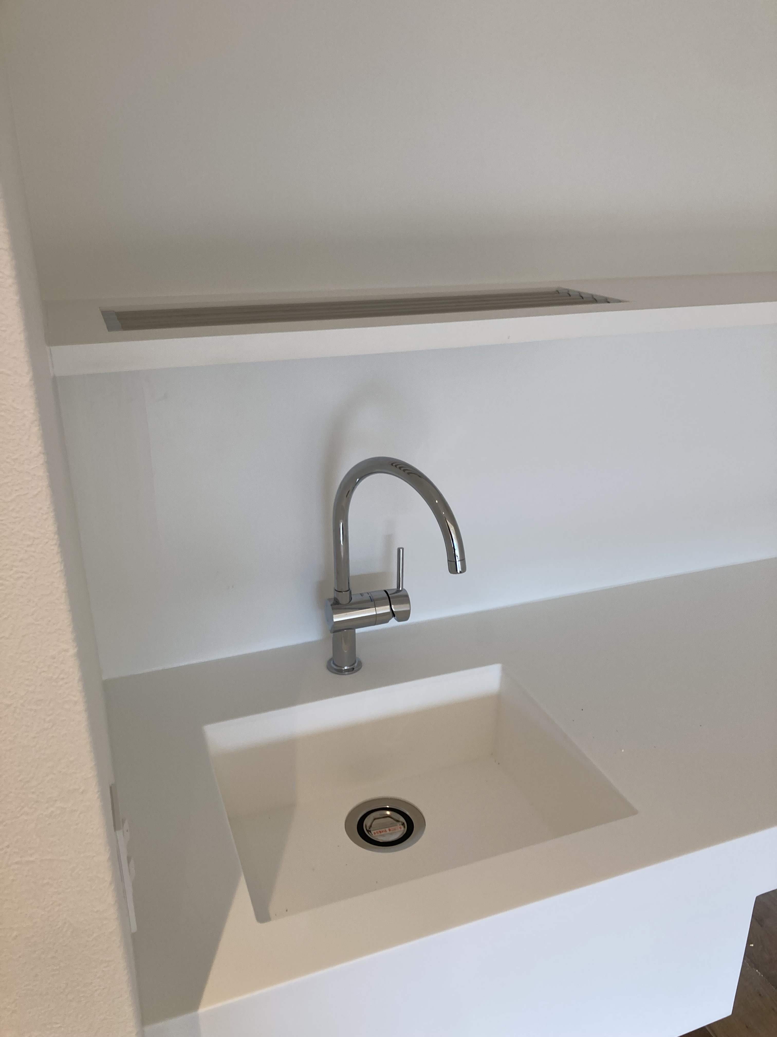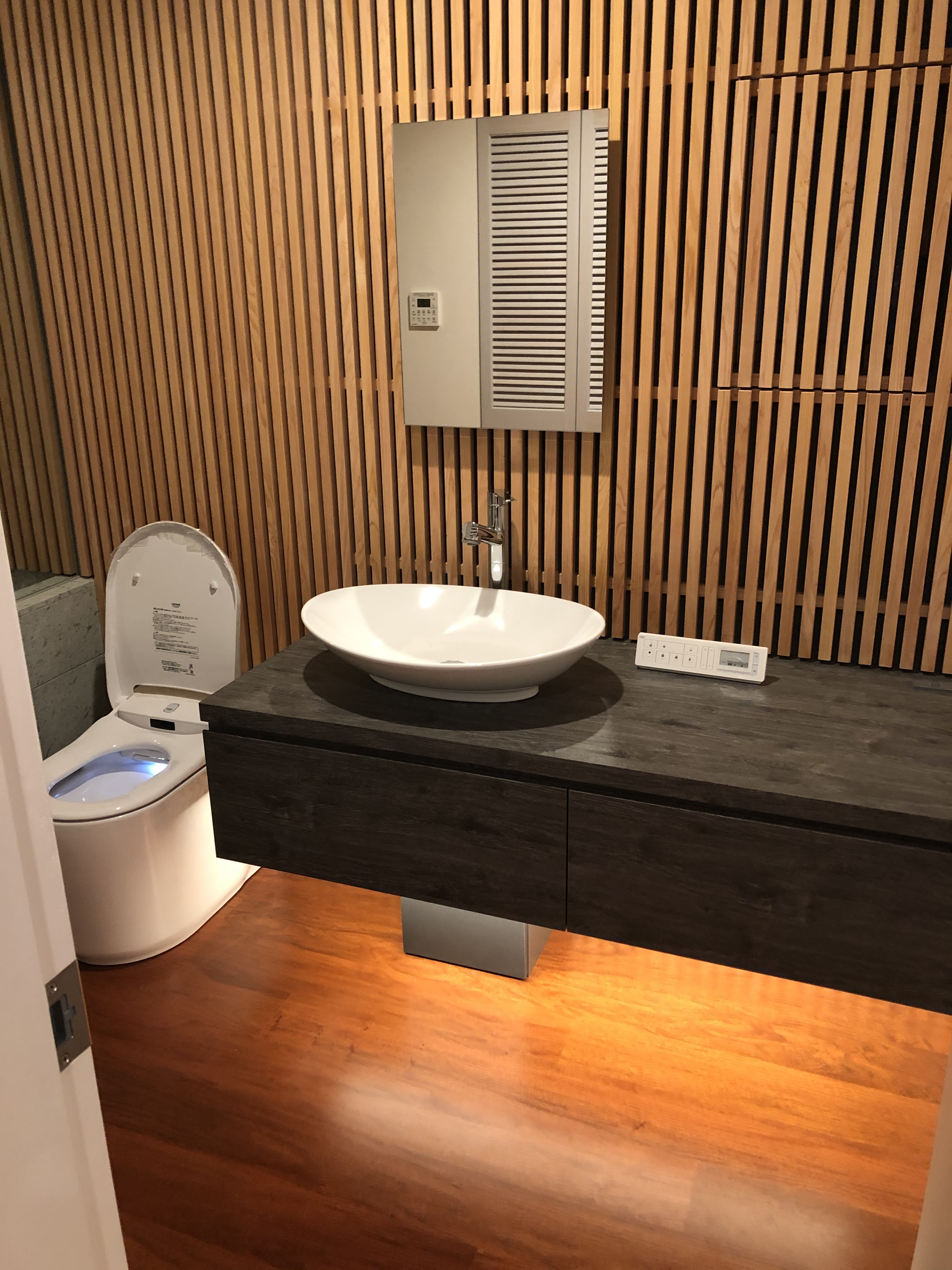 洗面ボウルとカウンターの継ぎ目がないシームレスデザイン