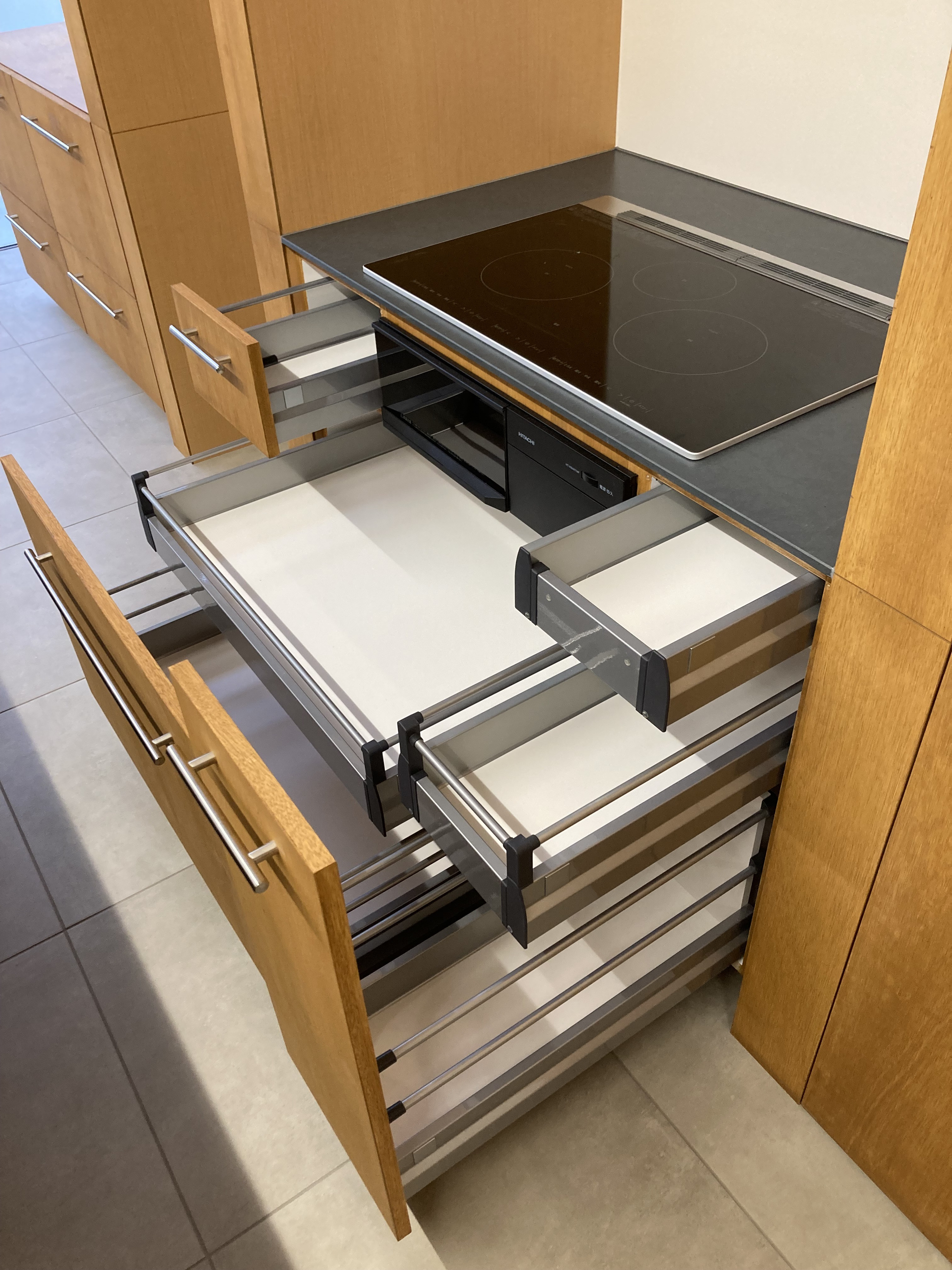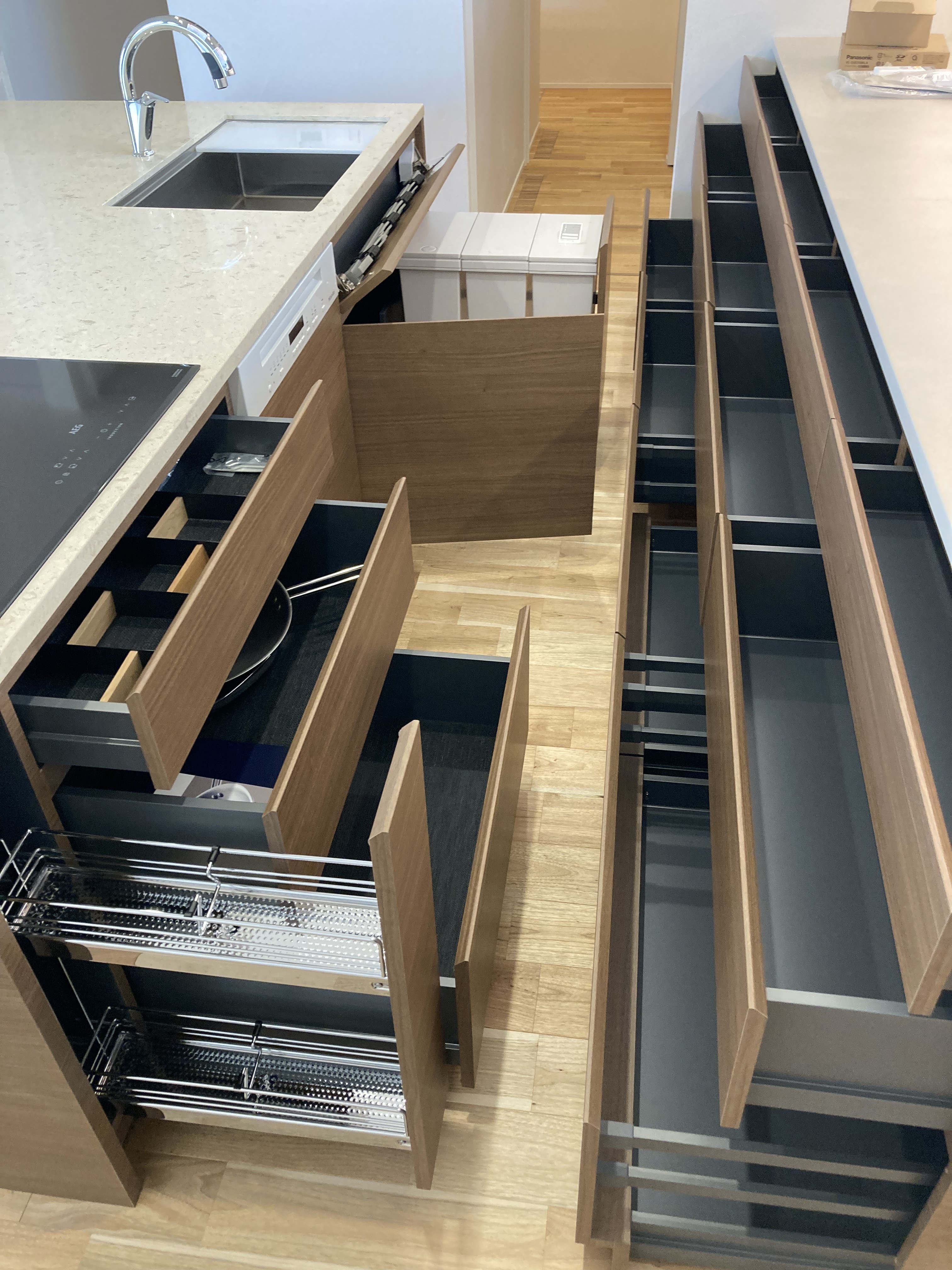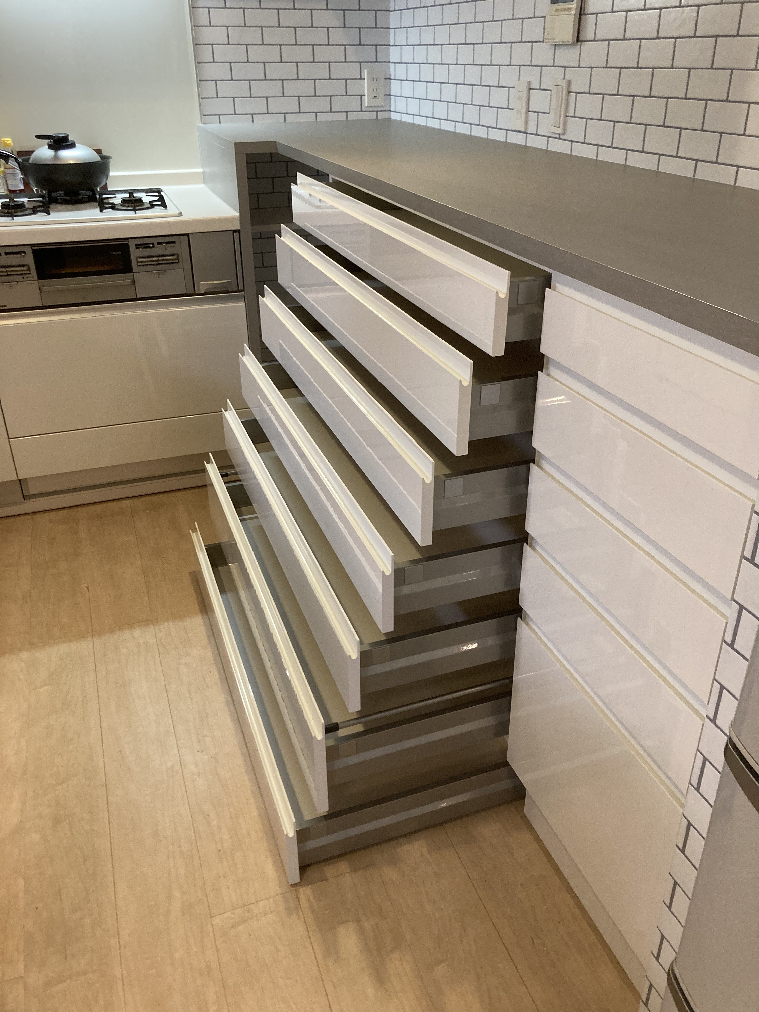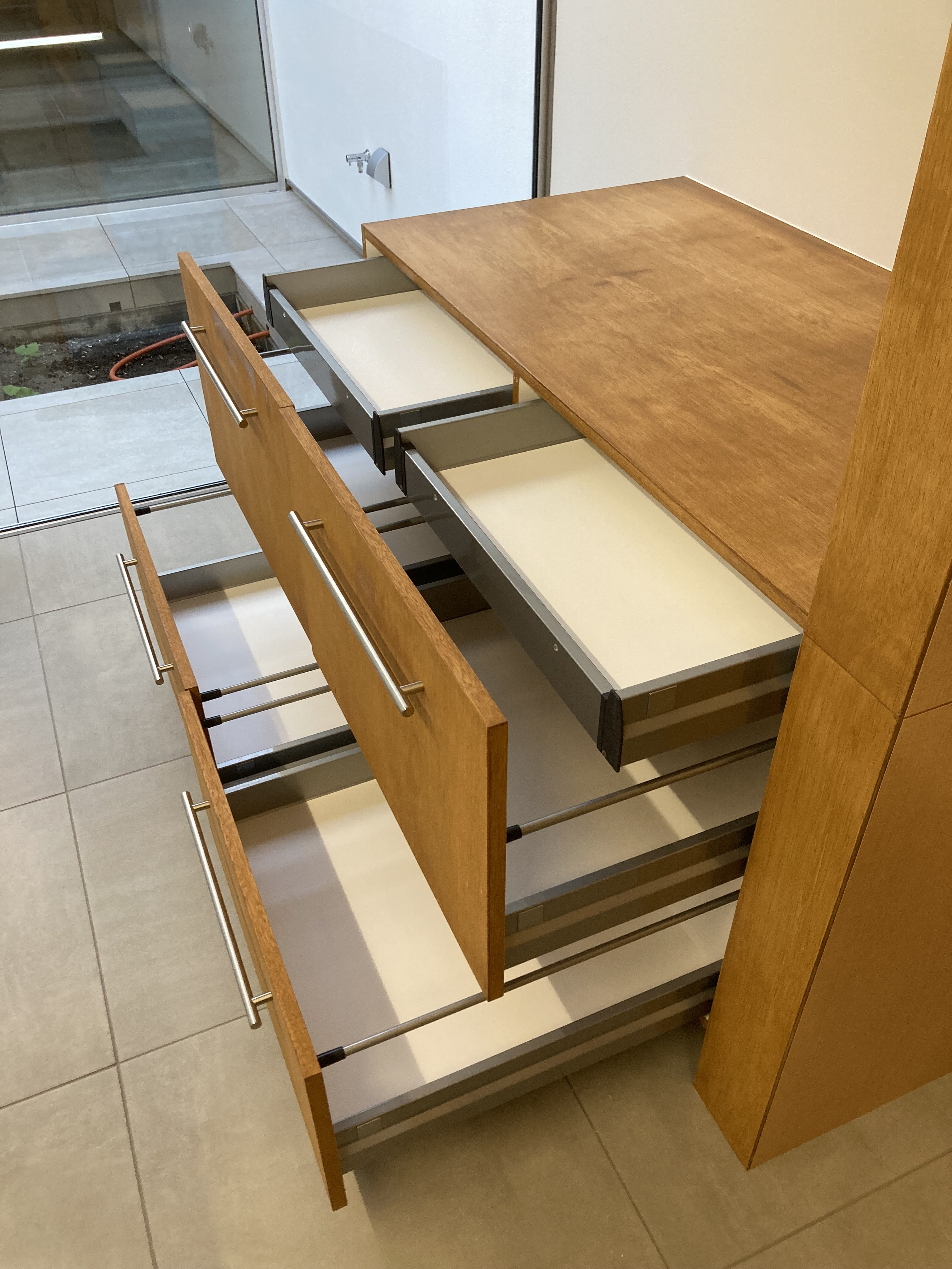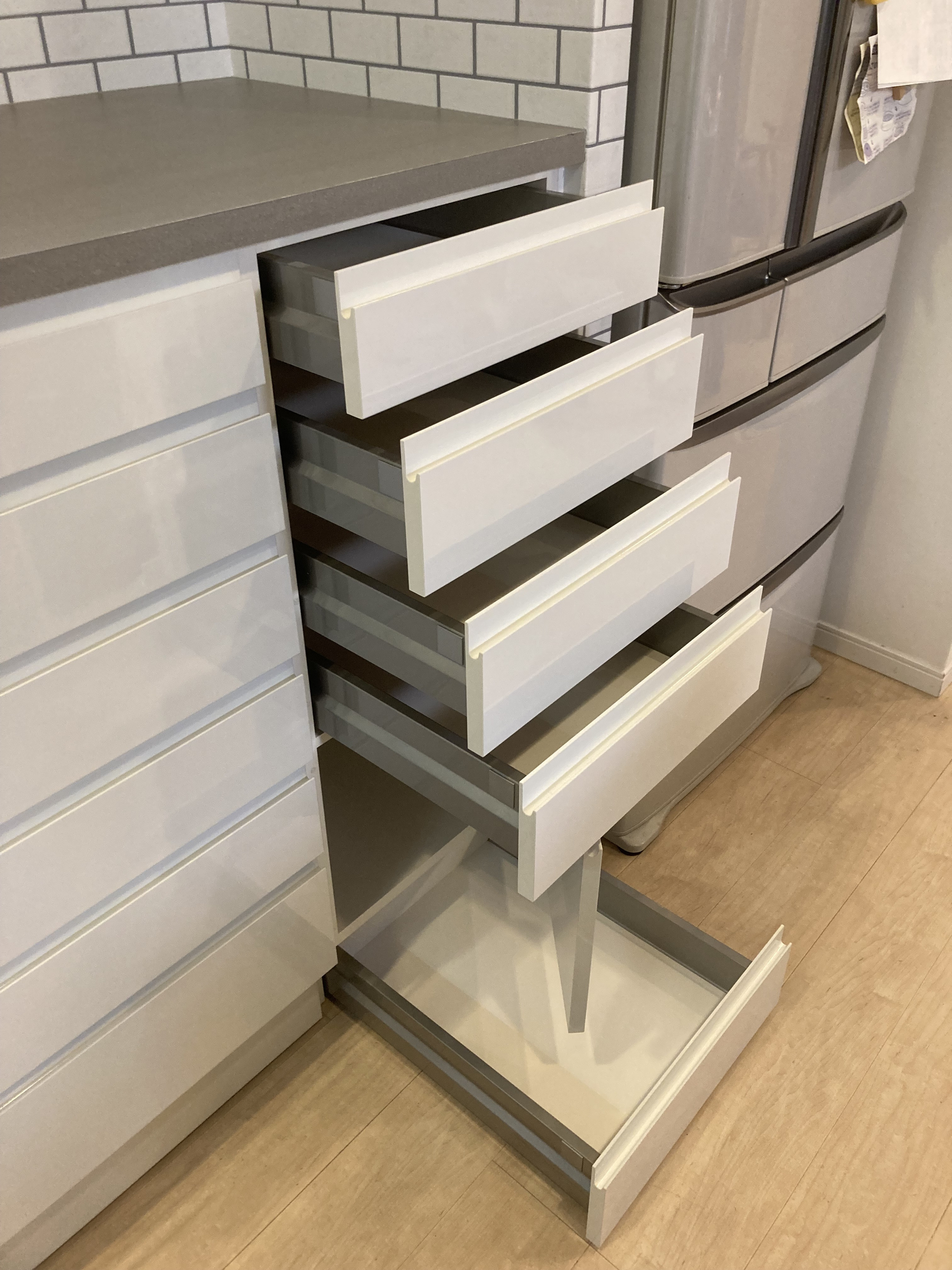 完全に引き出せるフルスライドレールとソフトクローズ仕様だから出し入れスムーズ