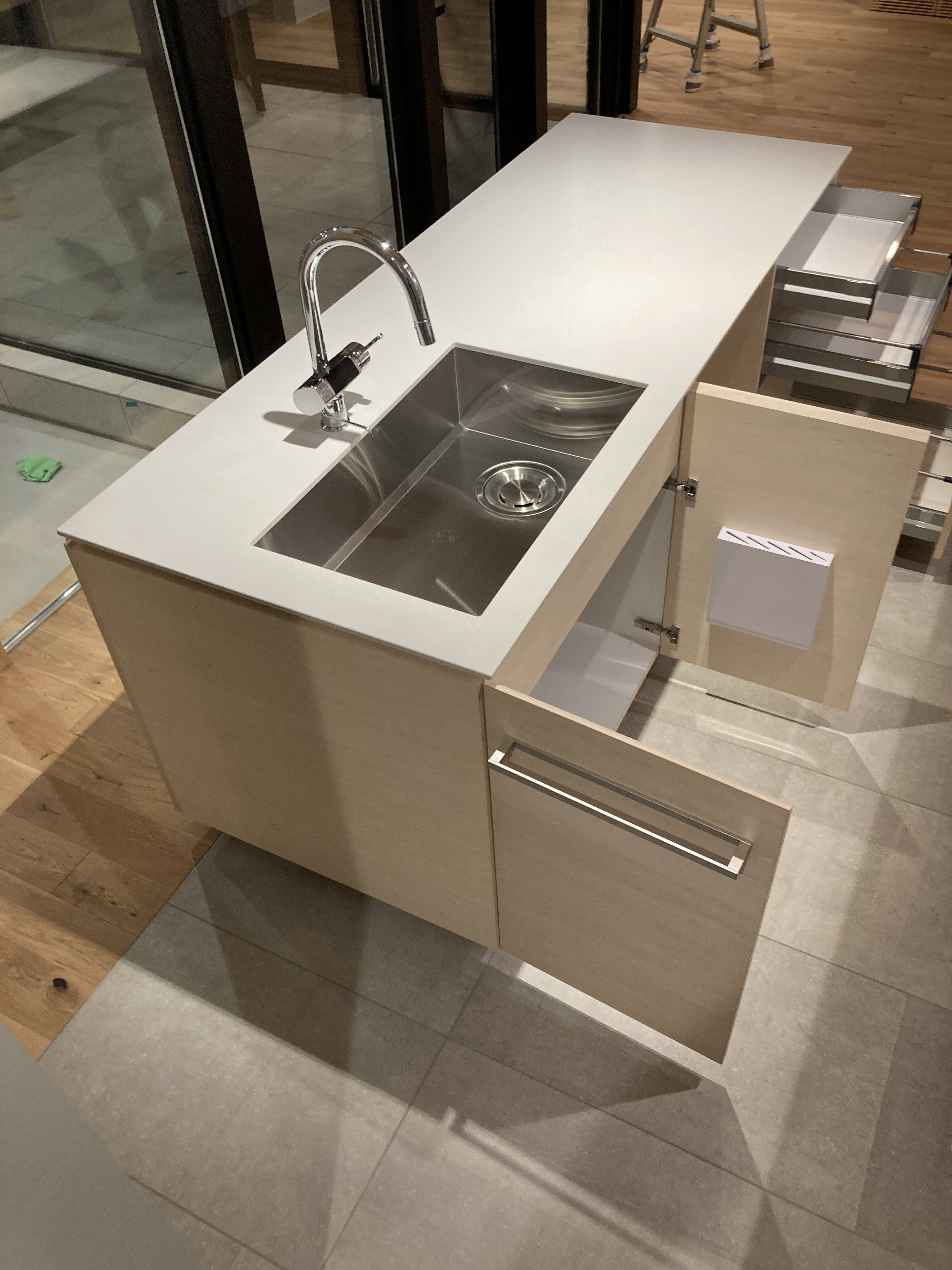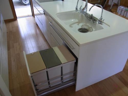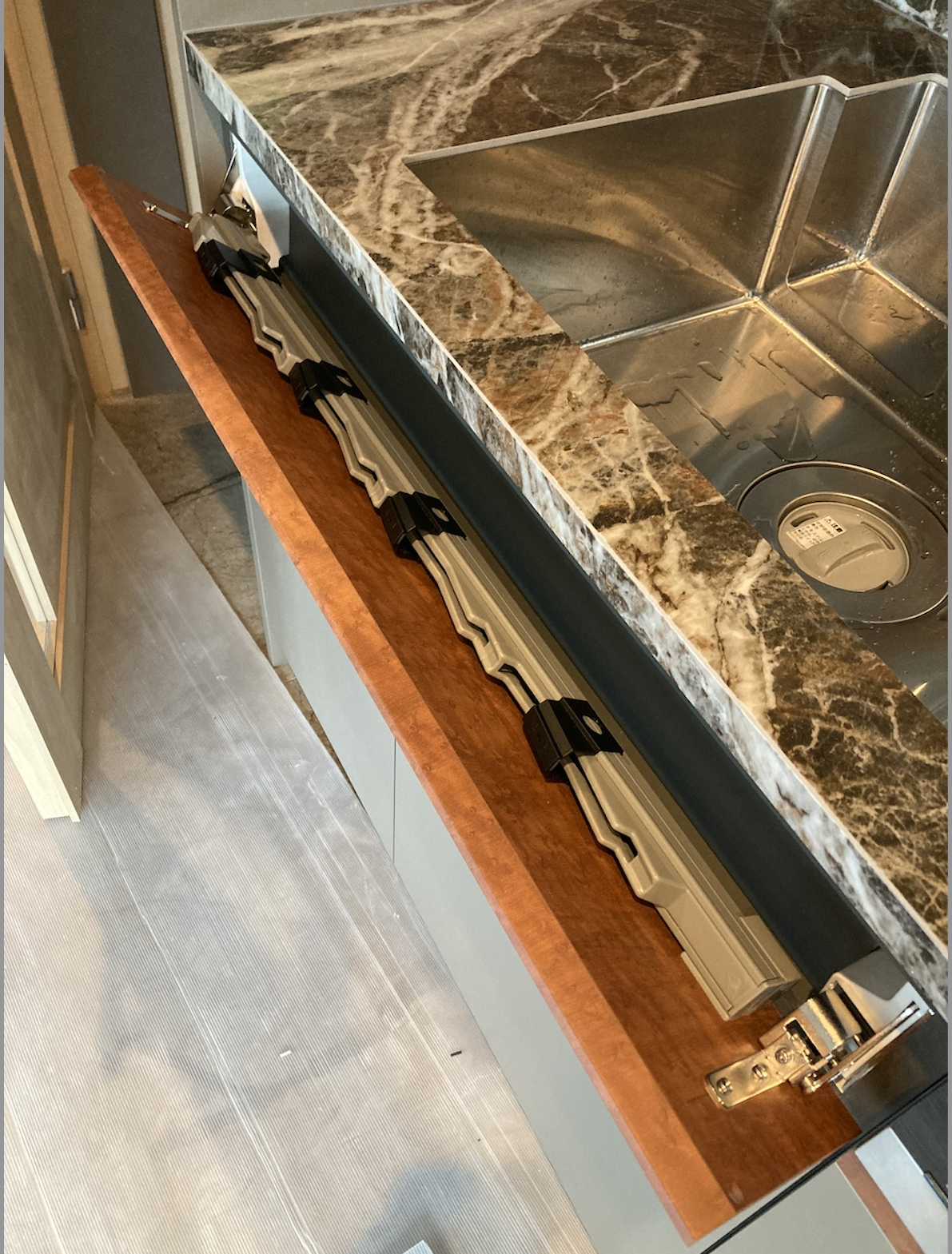シンク前のデッドスペースを有効活用した「包丁ポケット」