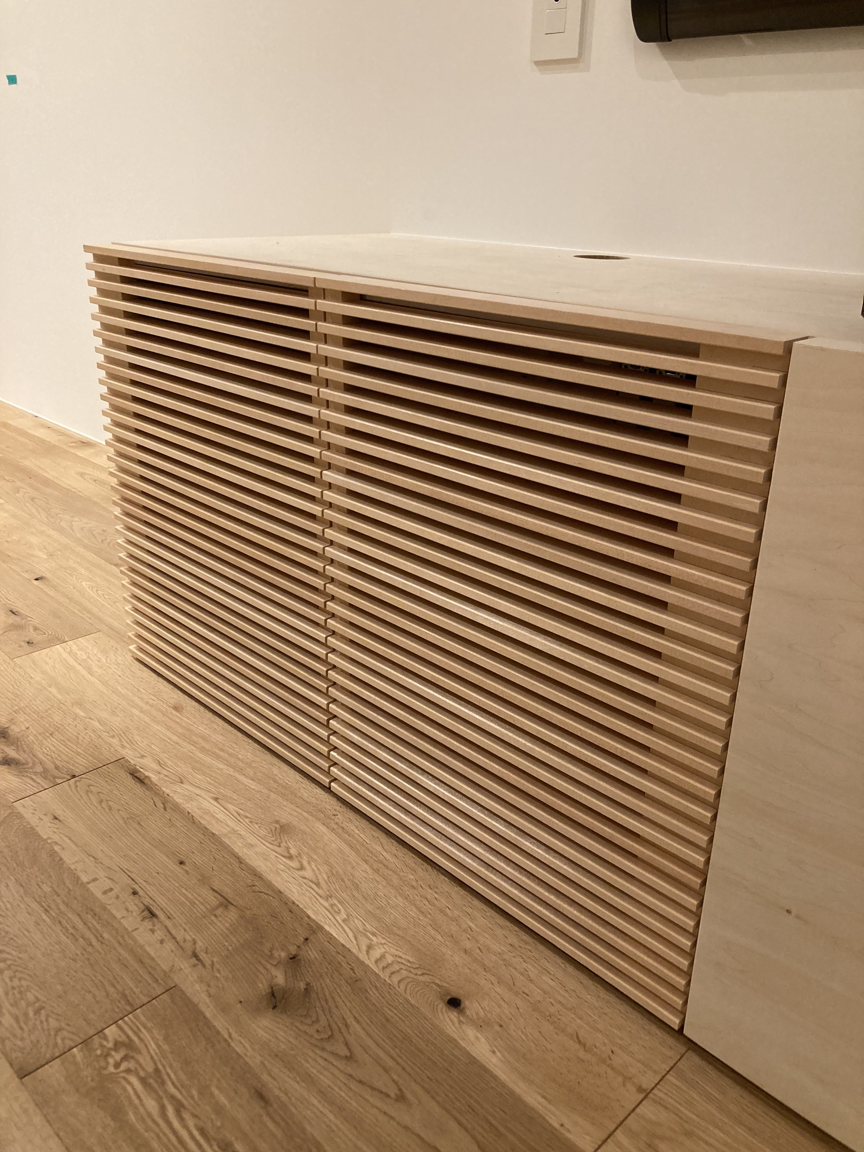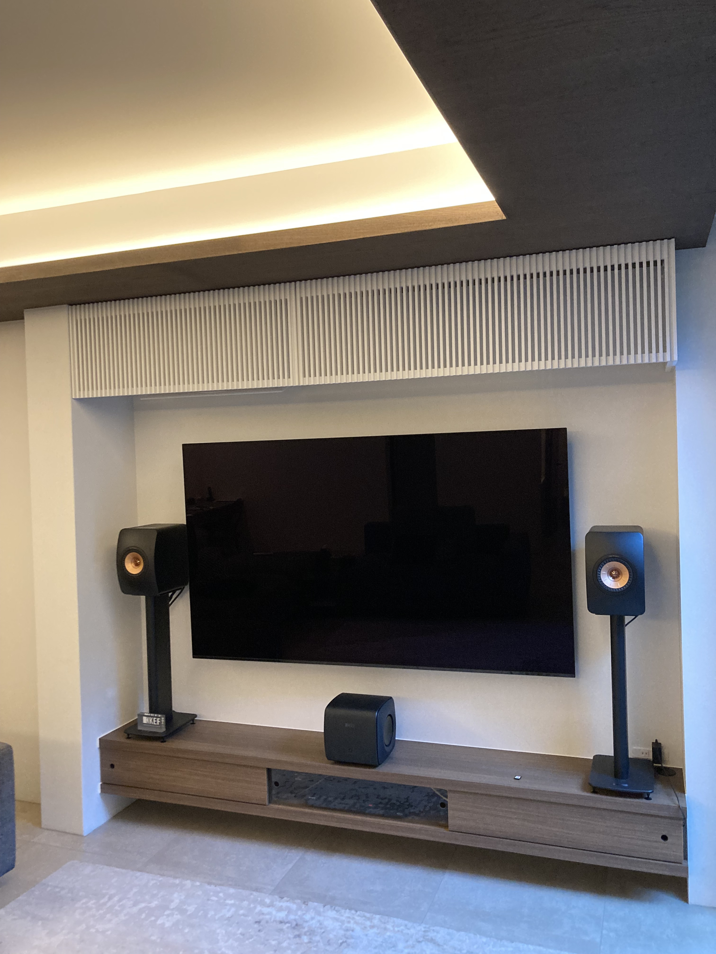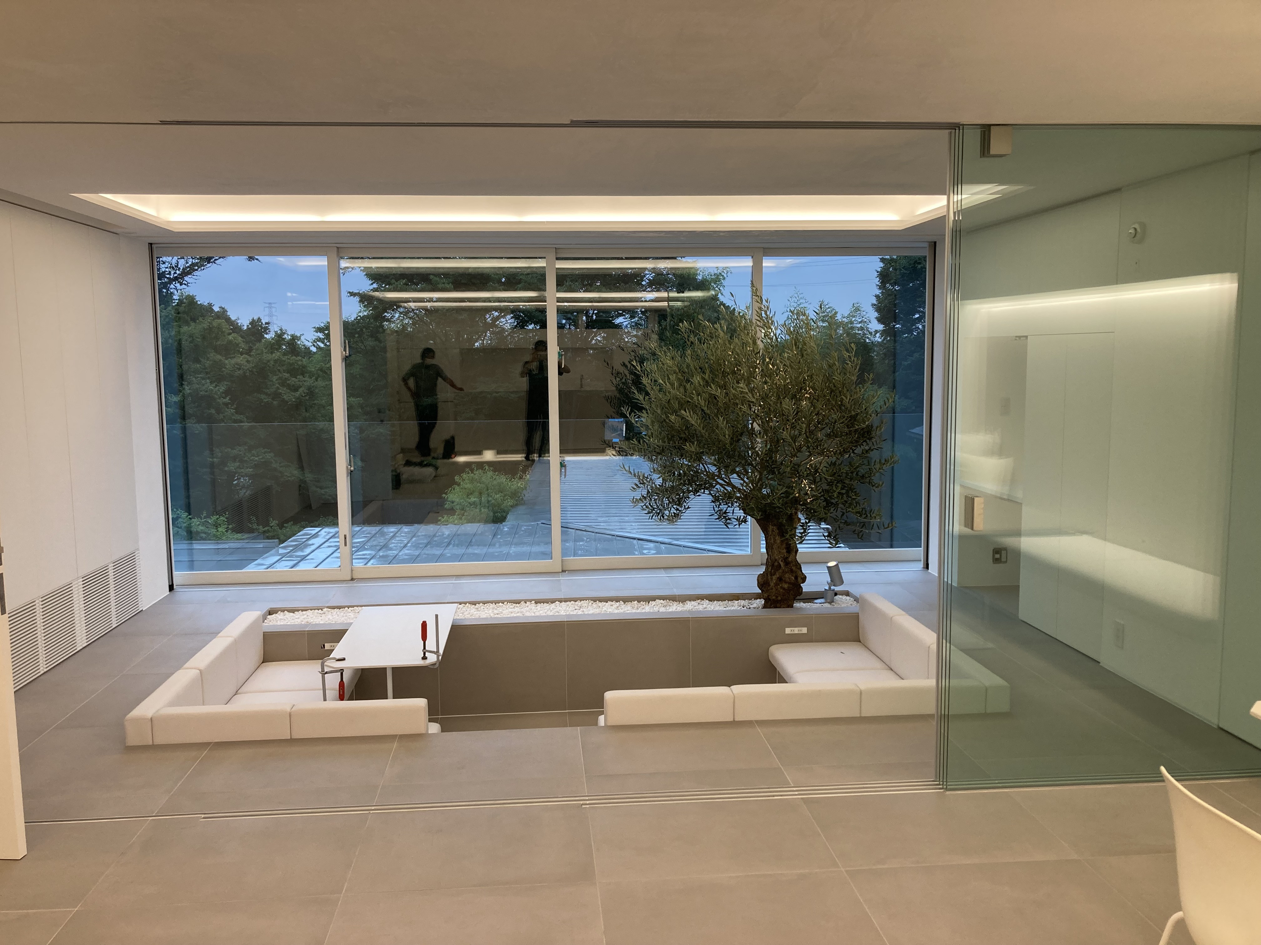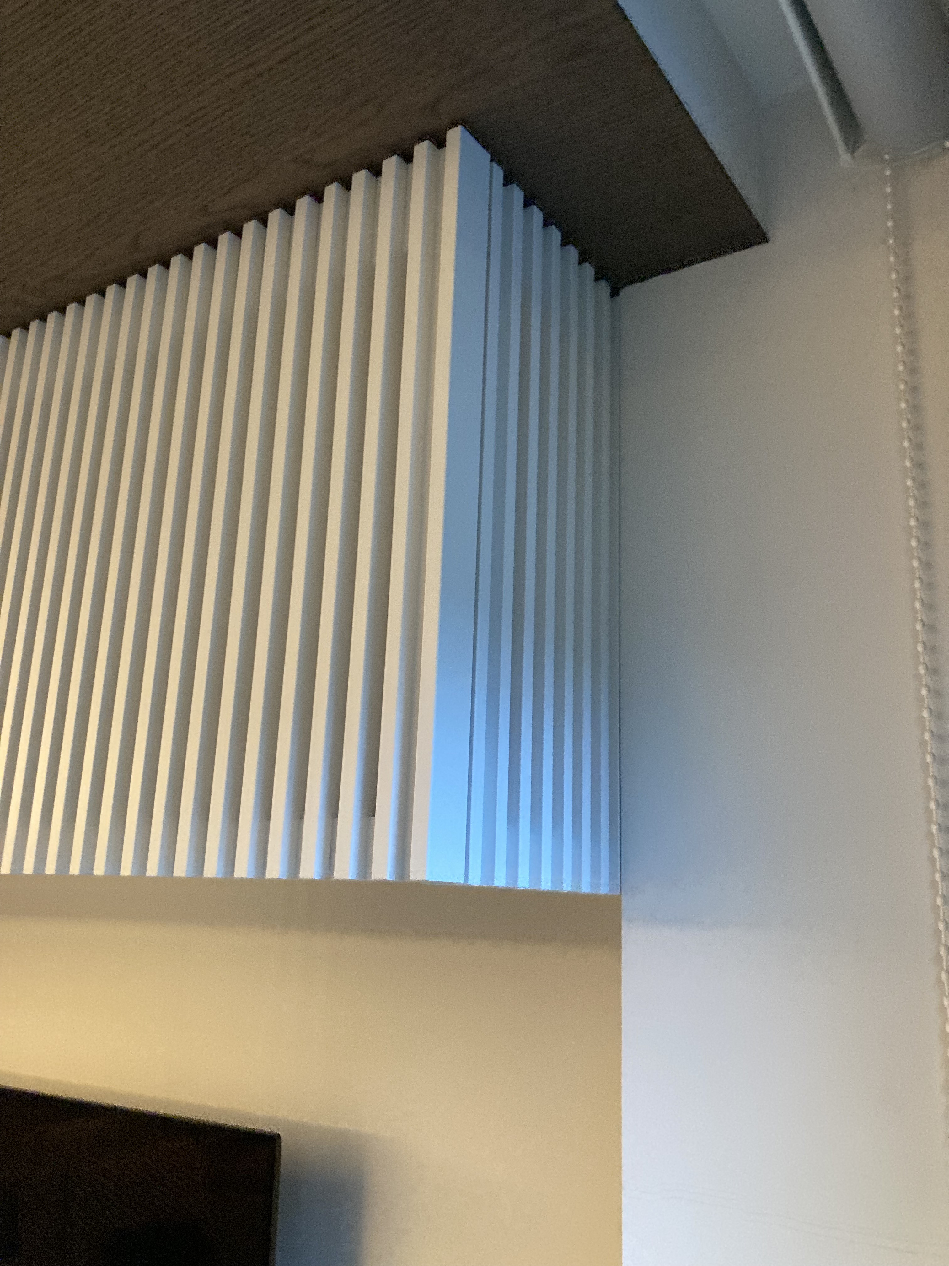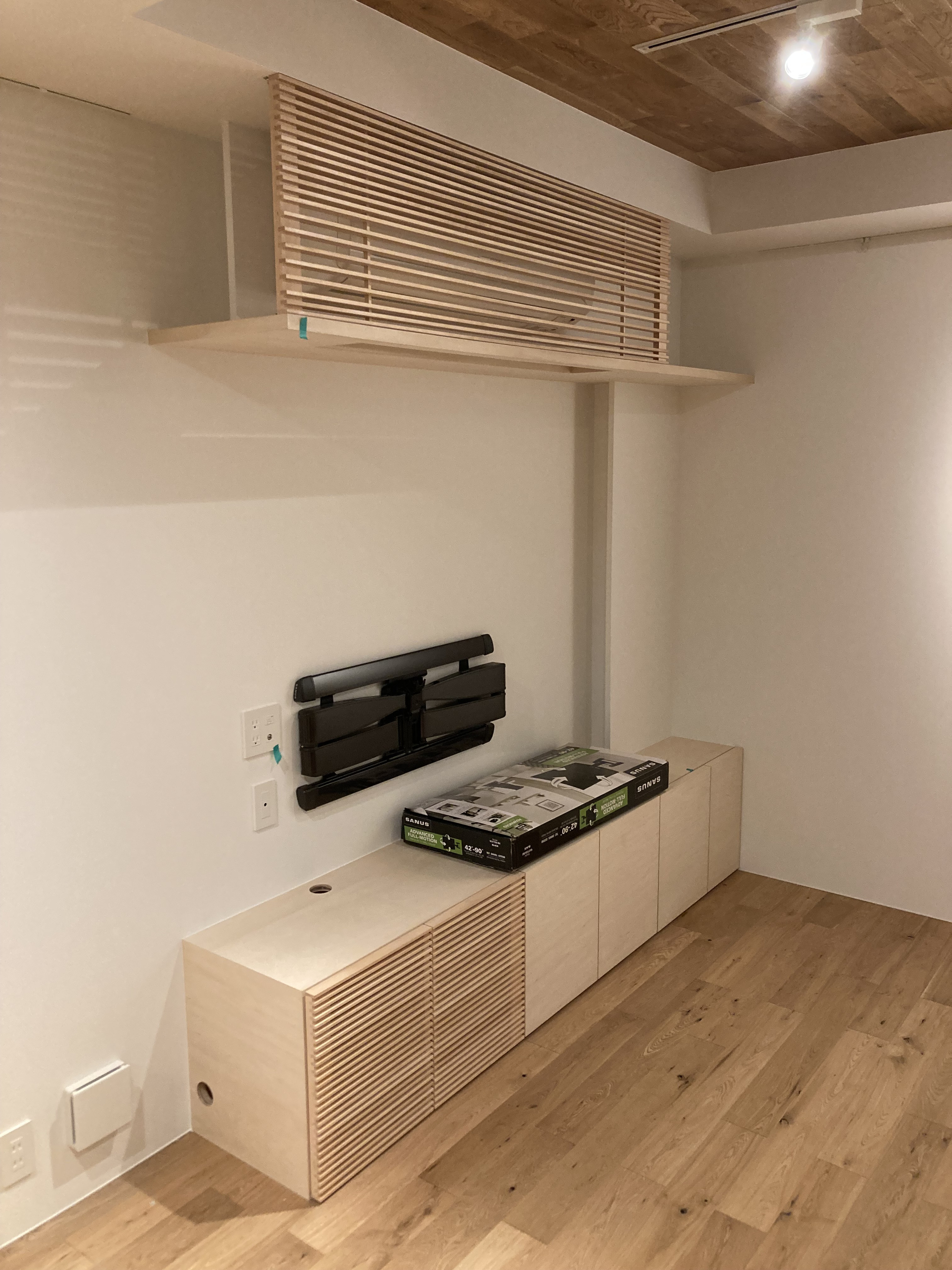 繊細な木目のルーバーと空間を広く見せるロースタイル