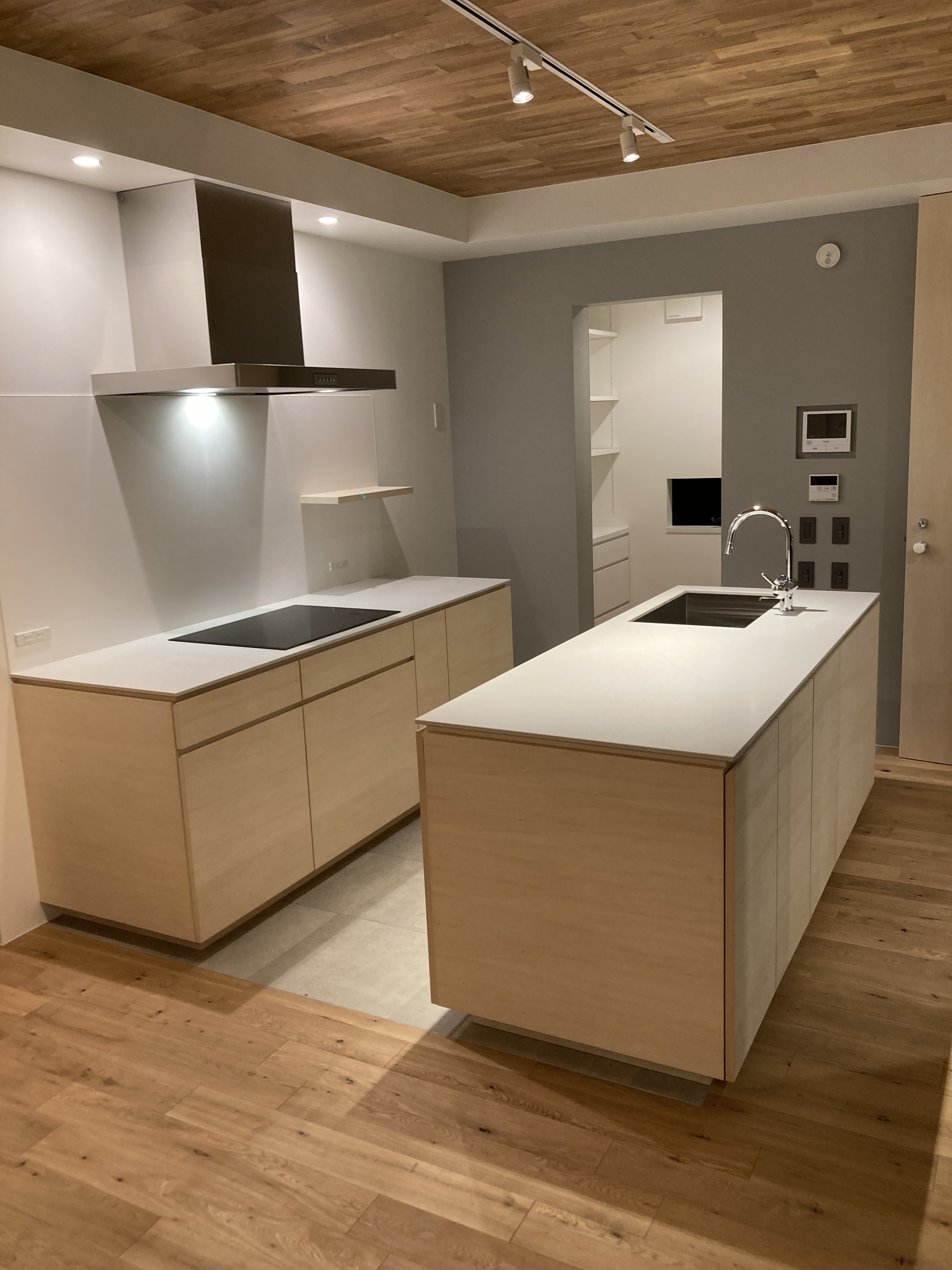 白とグレーが奏でるモダンな調和。理想を叶えるフルオーダーキッチン
