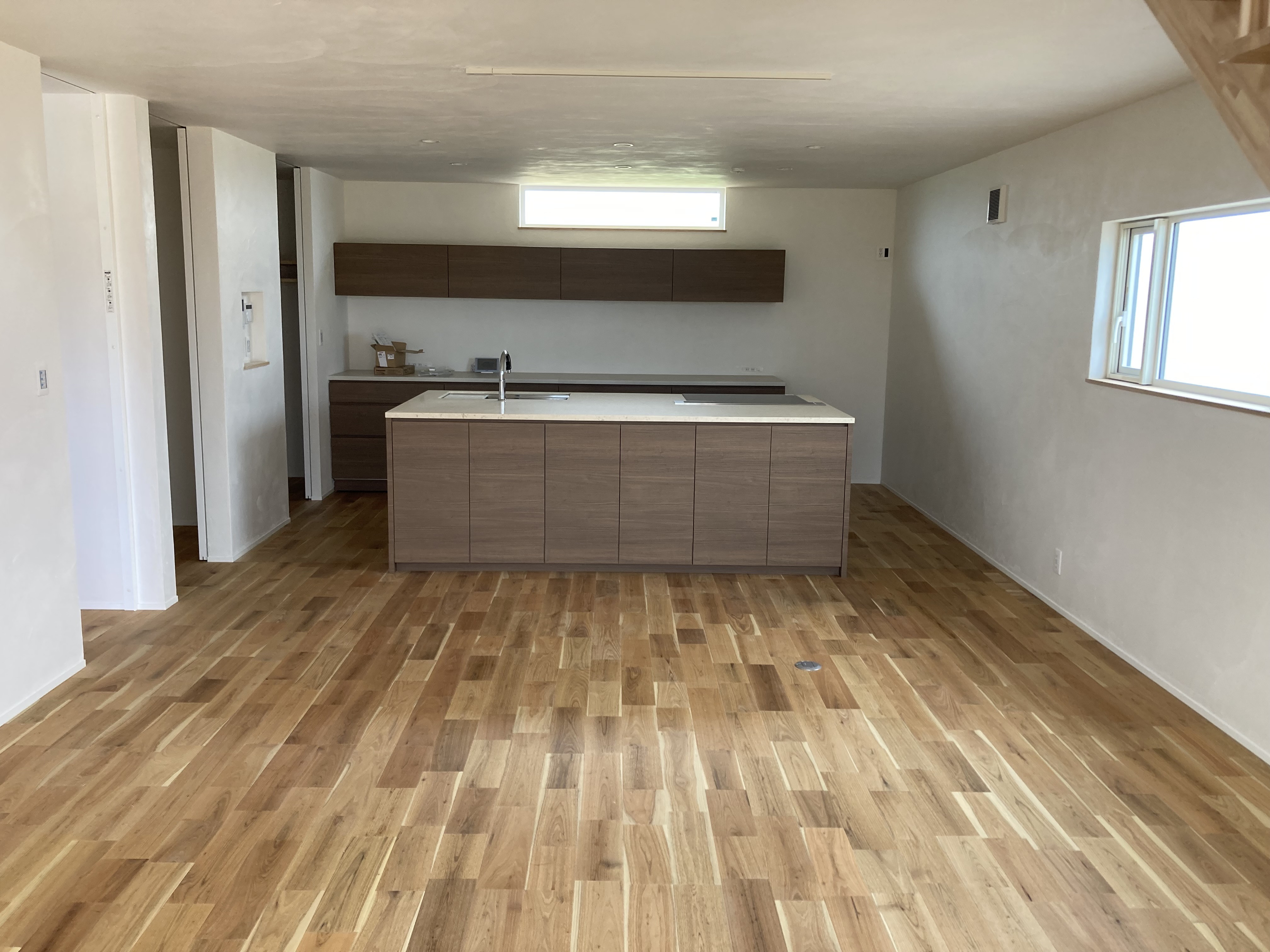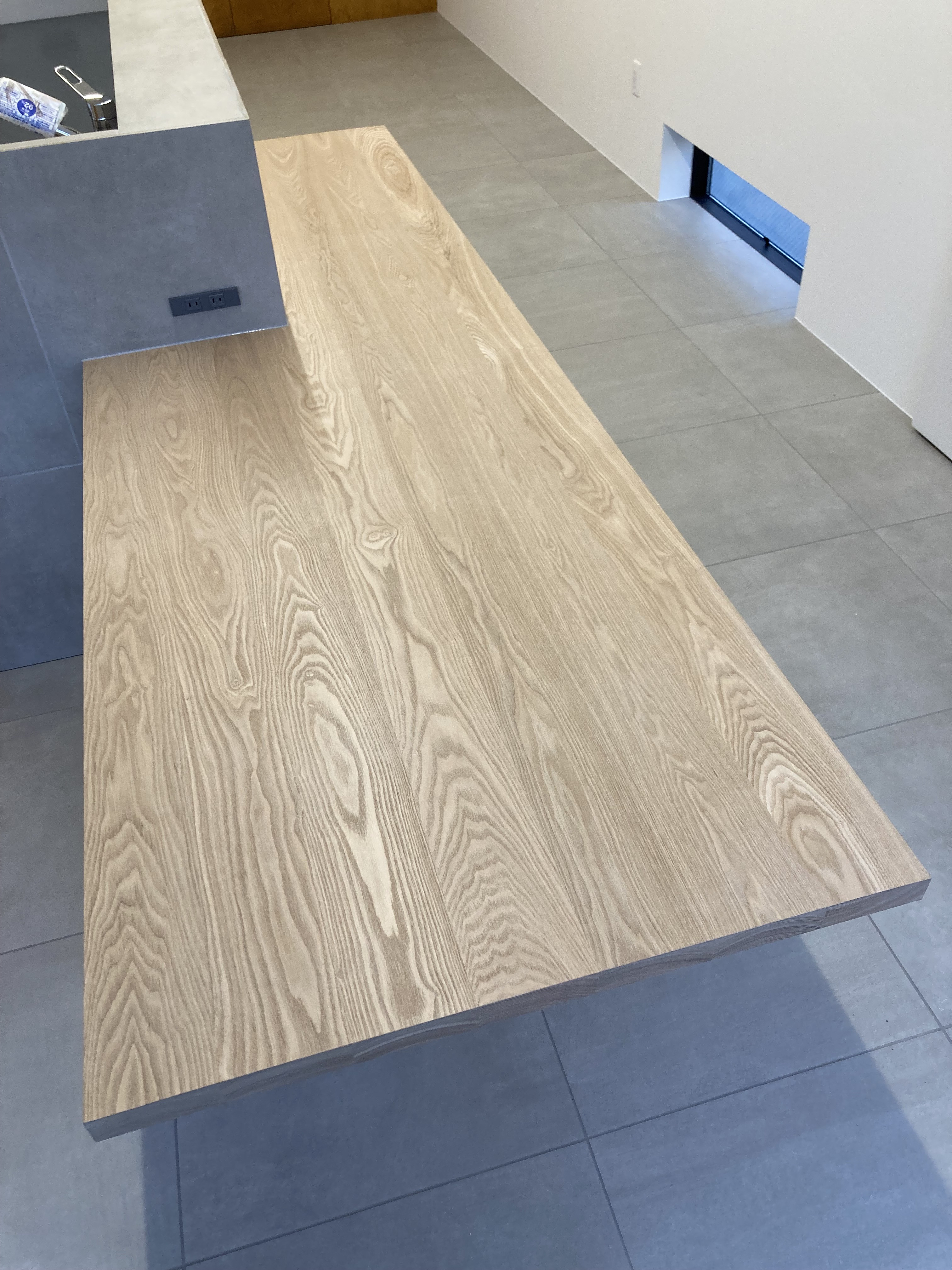 縦方向の力強い木目が美しい広々アイランドキッチン