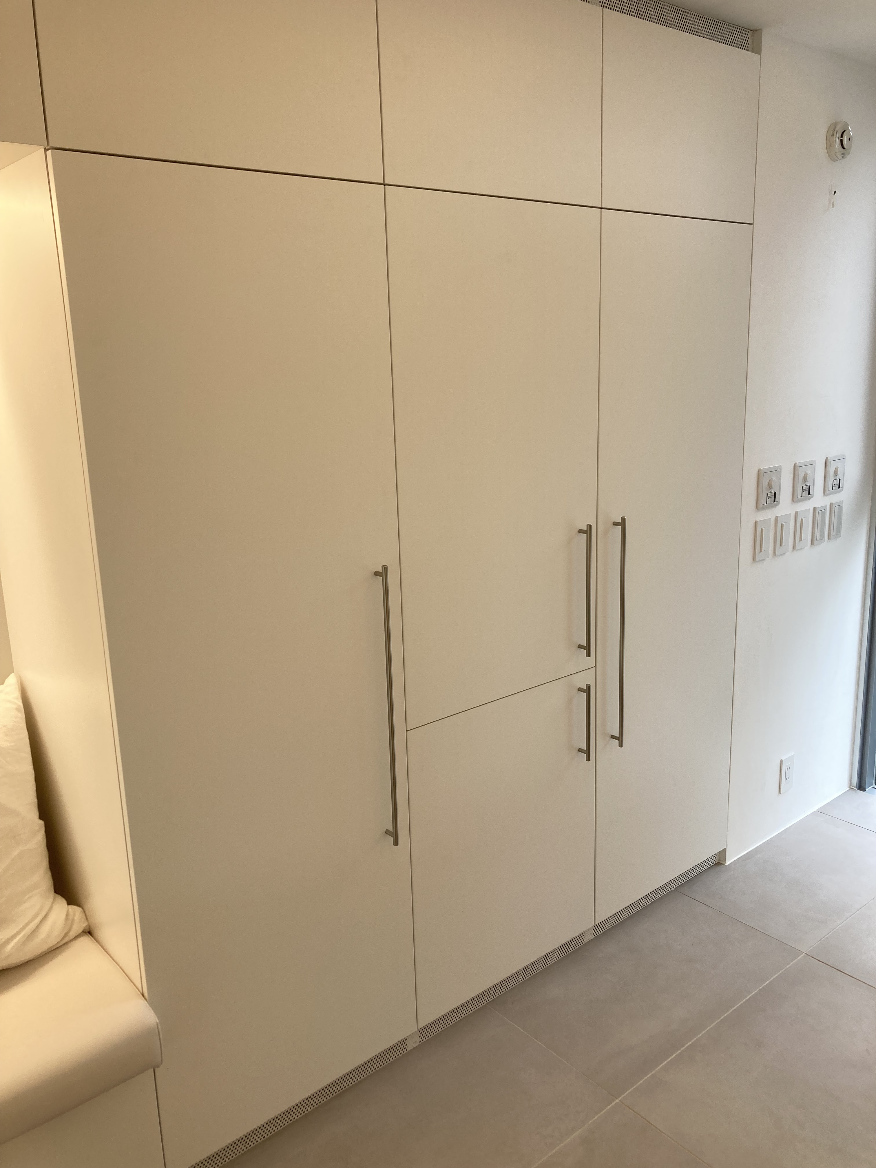天井近くまでの高さと幅いっぱいに設計された壁面収納