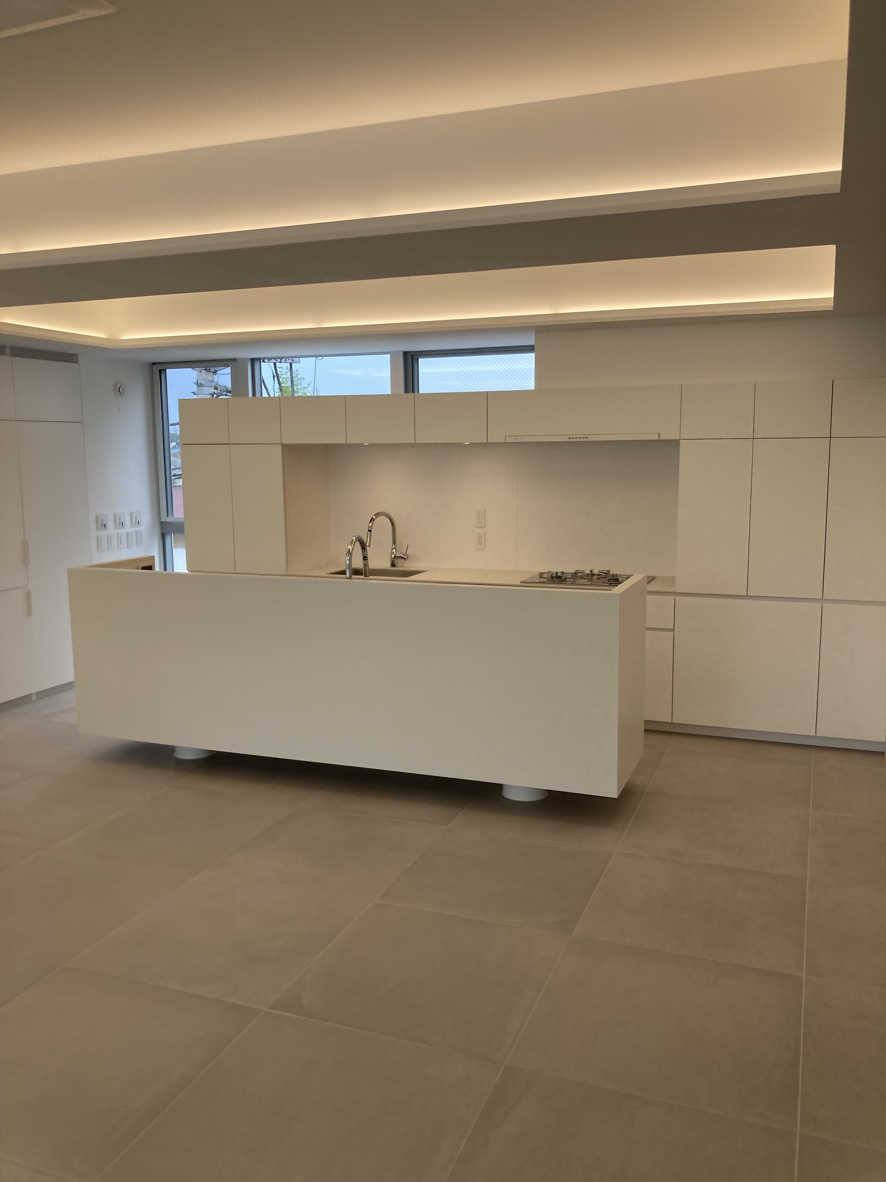 白という、贅沢。光の層に包まれる、未来のダイニング・キッチン。